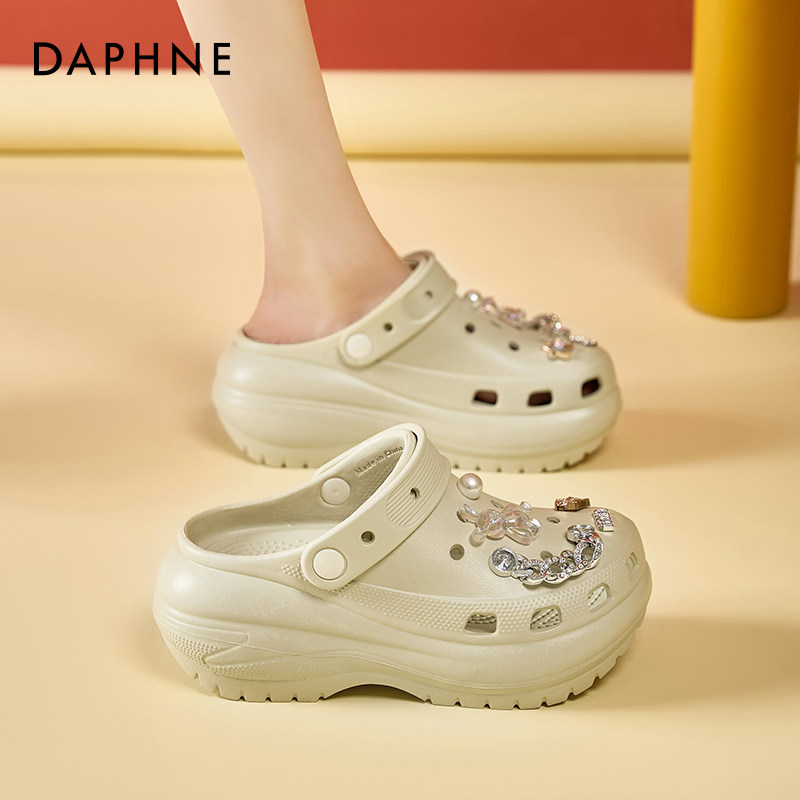 达芙妮厚底洞洞鞋女2026夏季新款两穿包头沙滩鞋拖鞋半拖凉拖凉鞋