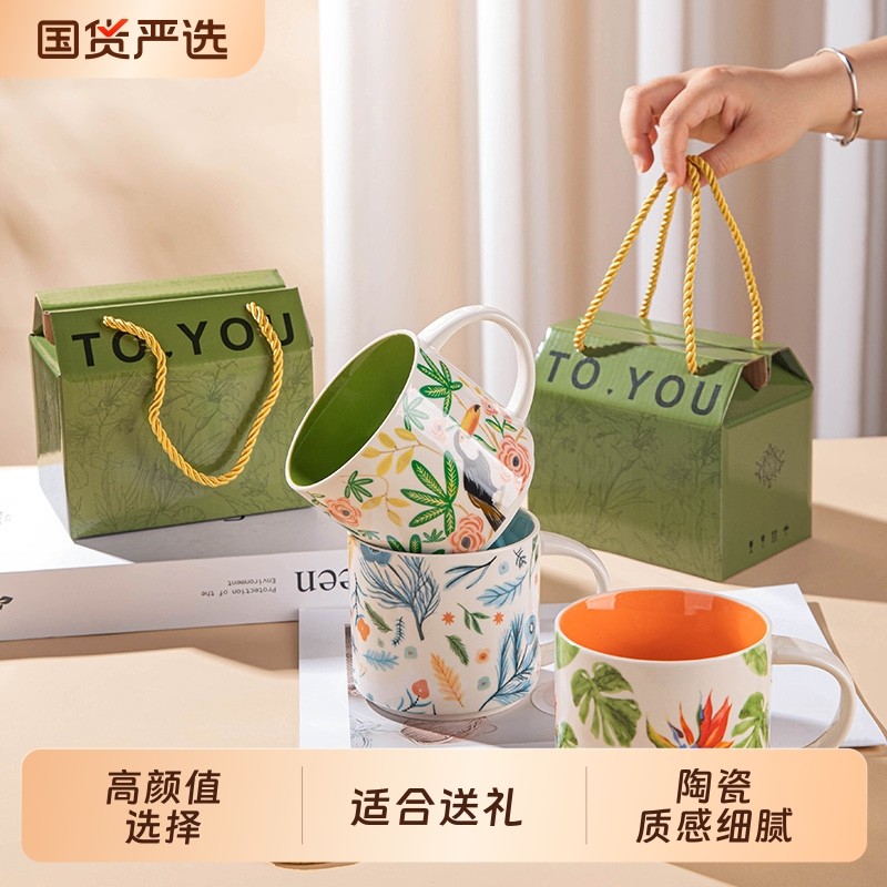 陶瓷水杯高颜值马克杯家用牛奶咖啡杯早餐杯大容量茶杯子伴手礼