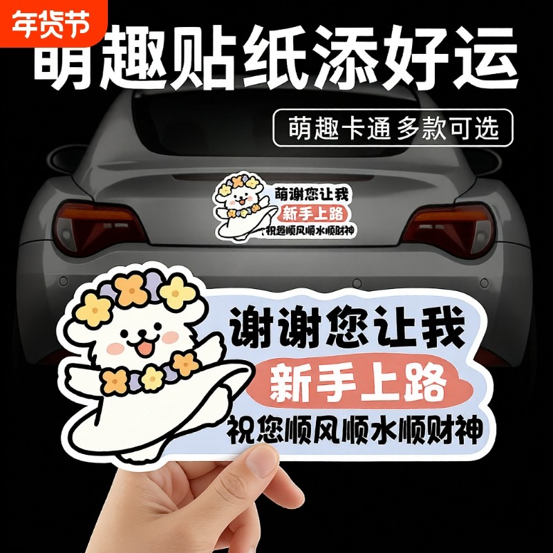 实习车贴磁吸女司机新手上路创意标志汽车贴纸磁性划痕遮挡反光贴