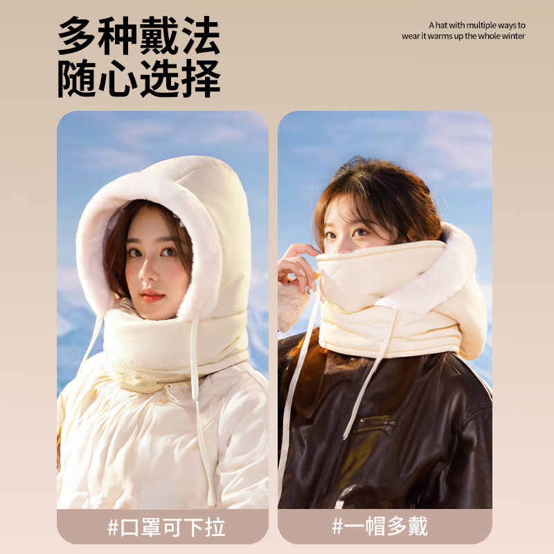 帽子秋冬季防风骑车女围脖一体面罩头套保暖防寒雷锋帽男冬天骑行