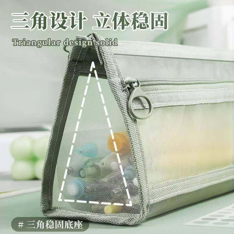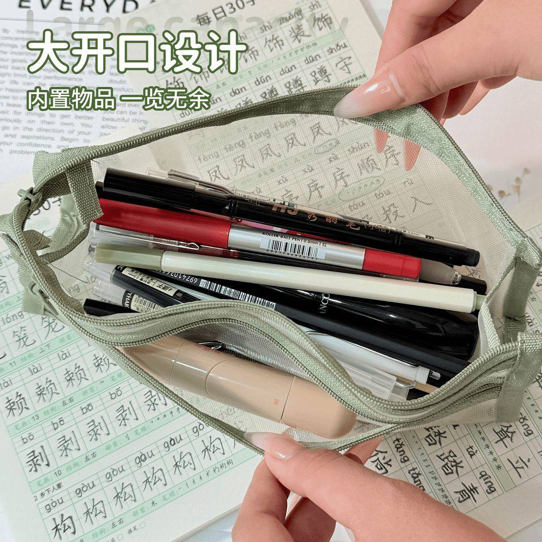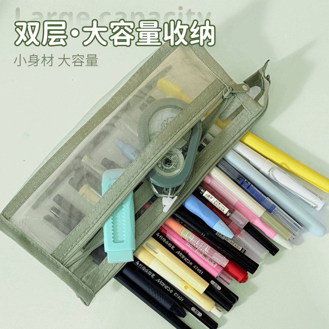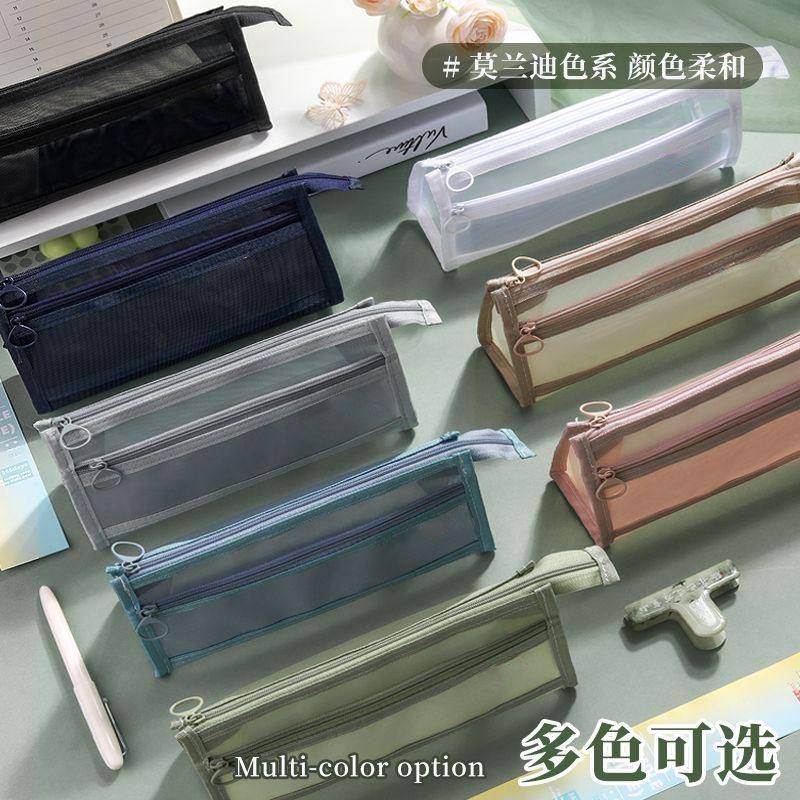 网纱透明笔袋双层大容量考试专用学生文具盒分区分层莫兰迪色系袋