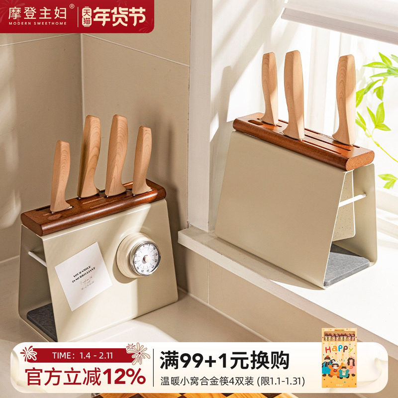 摩登主妇中古风刀架置物架新款厨房台面款实木刀座刀具收纳菜刀架