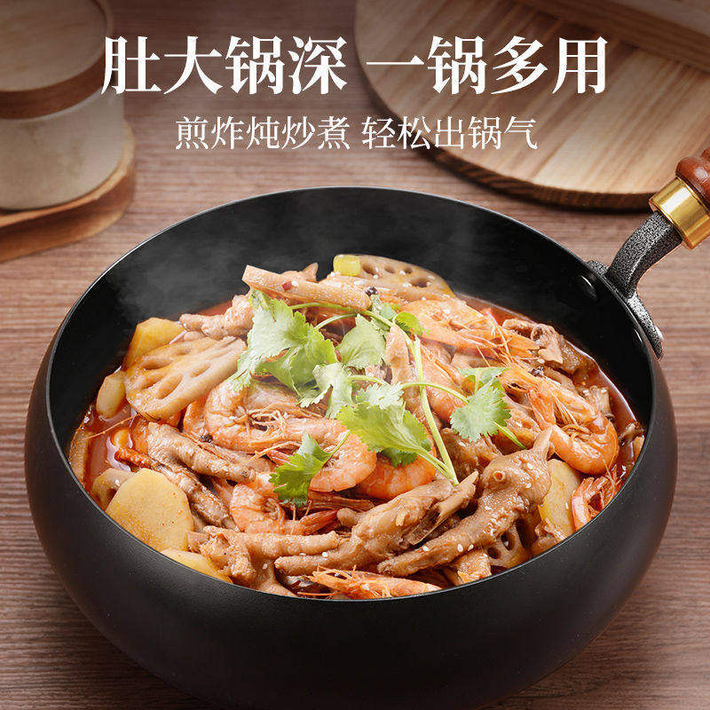 章丘炒菜锅传统铁锅官方旗舰老式炒锅家用不粘锅无涂层燃气灶适用
