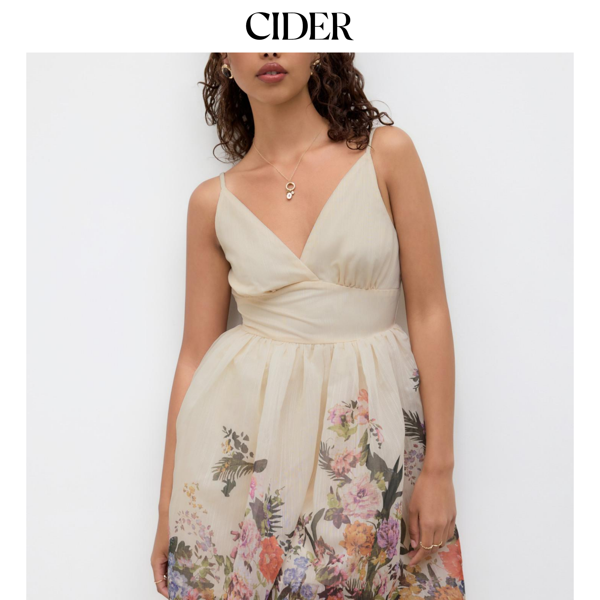 CIDER 夏季女装V领碎花褶边抽绳迷你连衣裙114422920