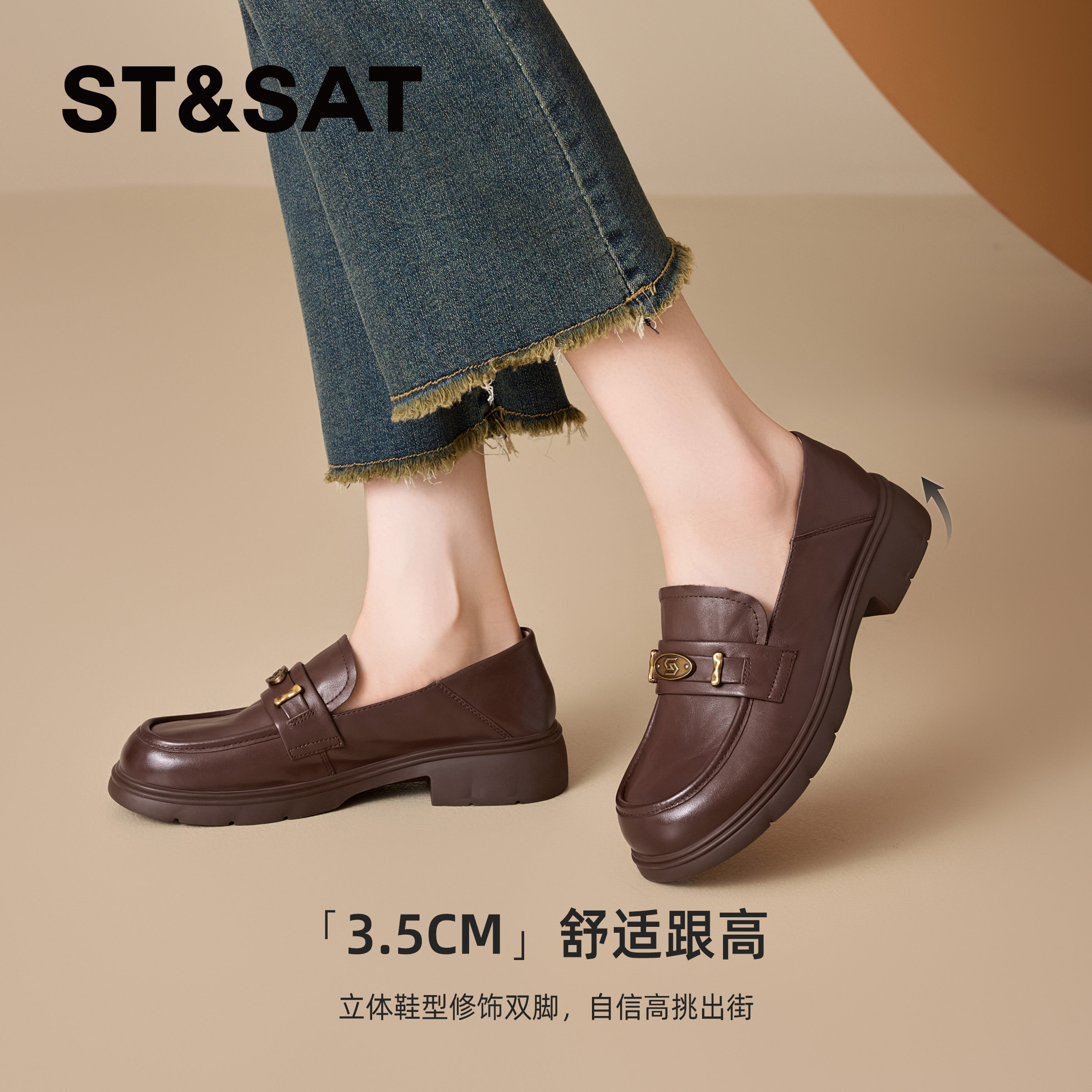 星期六真皮牛皮乐福鞋女鞋2025新款一脚蹬软底软面厚底英伦小皮鞋