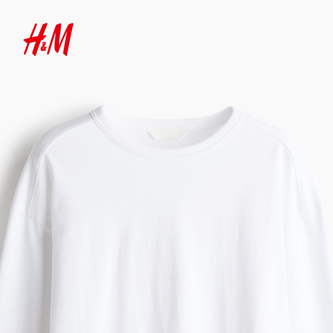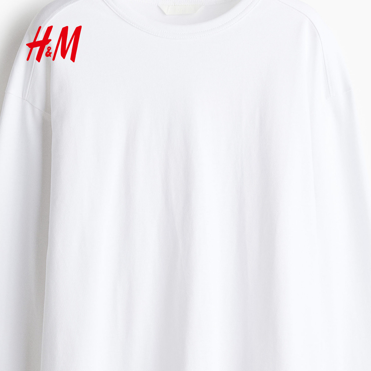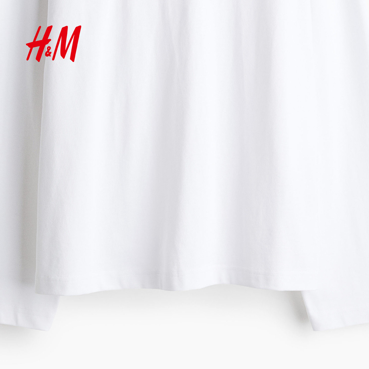HM女装T恤春季大廓形印花落肩棉质长袖上衣打底衫1243660