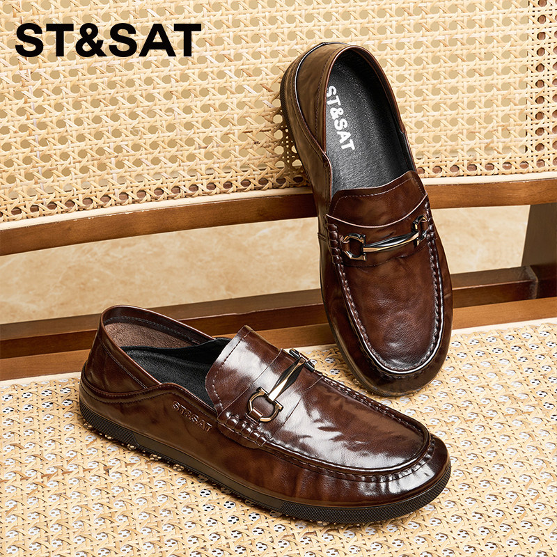 星期六乐福鞋男2025新款秋季一脚蹬懒人鞋男士休闲皮鞋百搭豆豆鞋