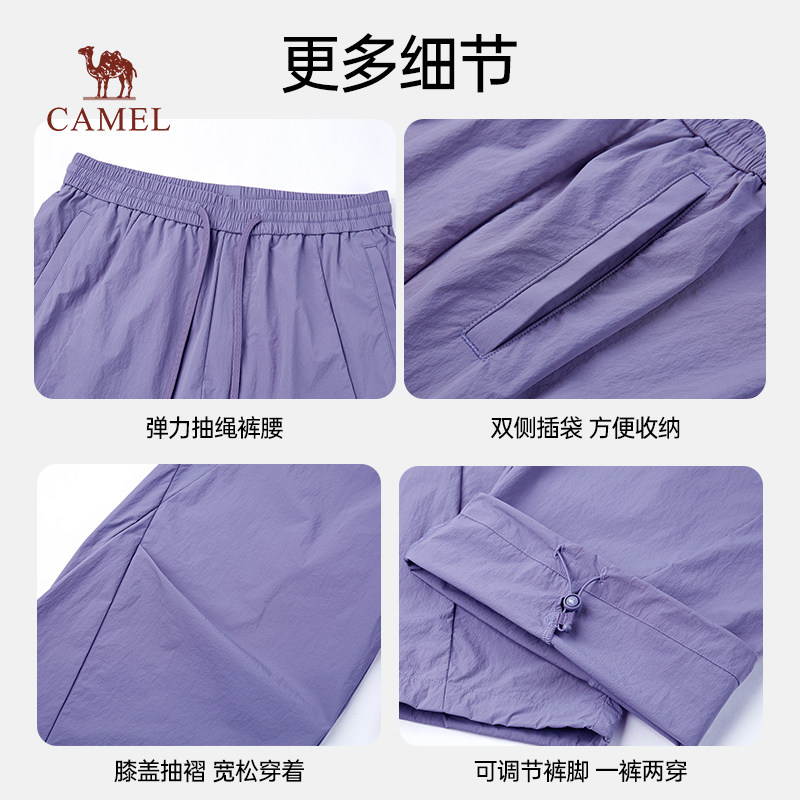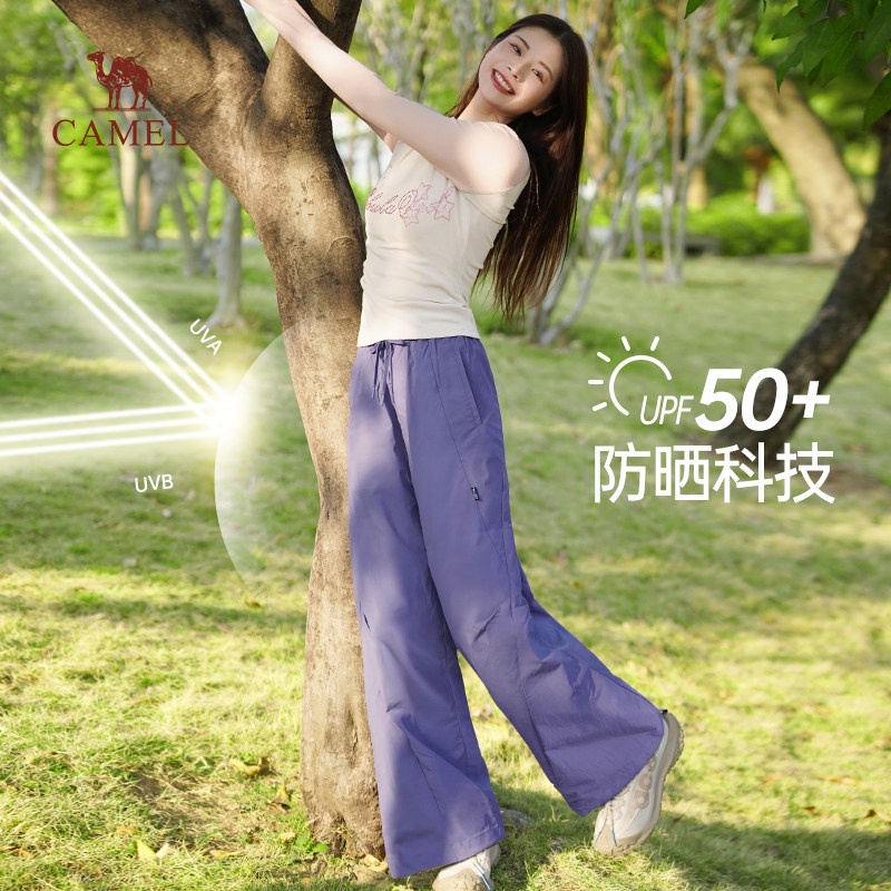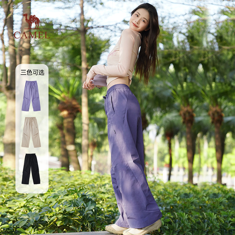 骆驼女装防晒工装裤2025秋季紫色休闲薄款户外宽松伞兵裤