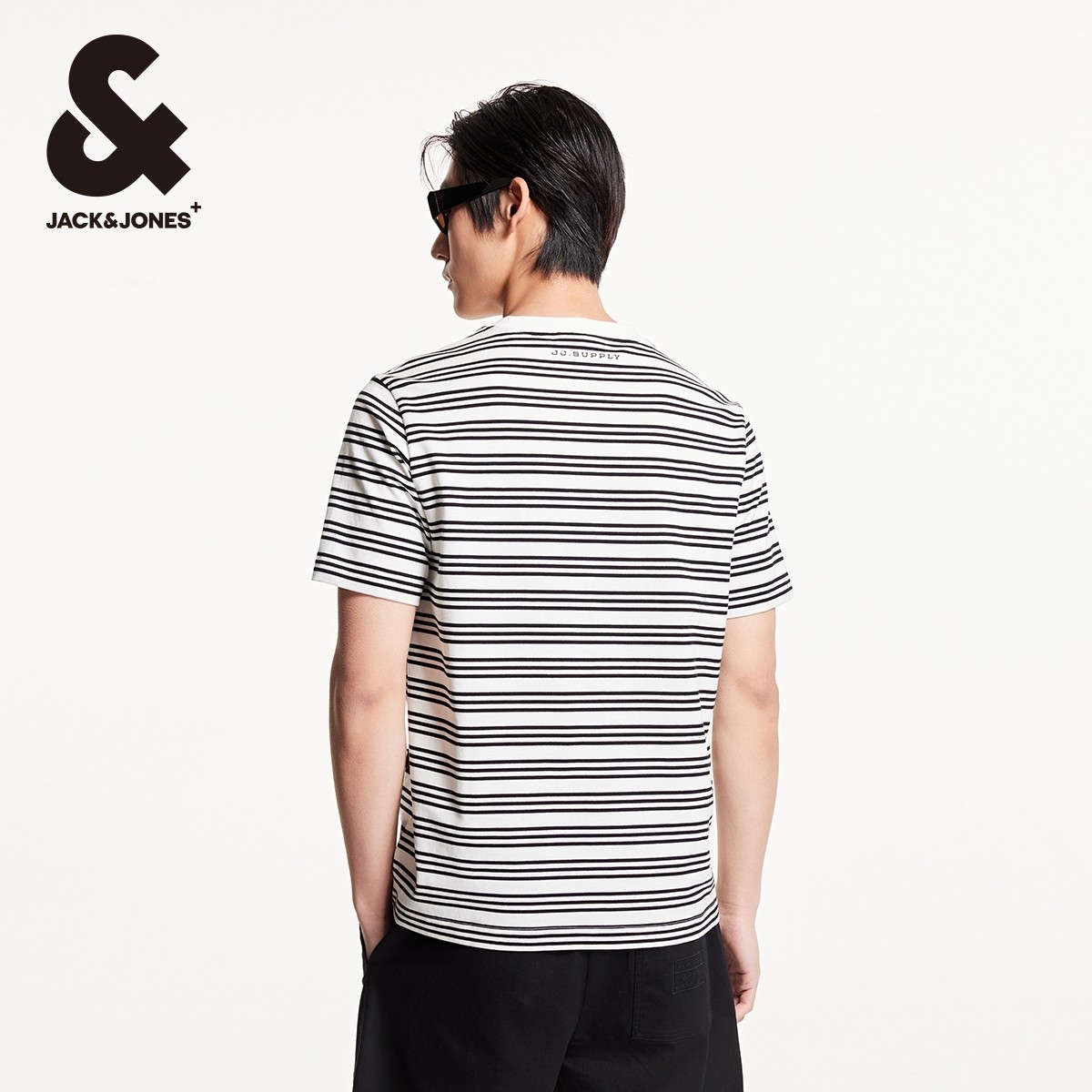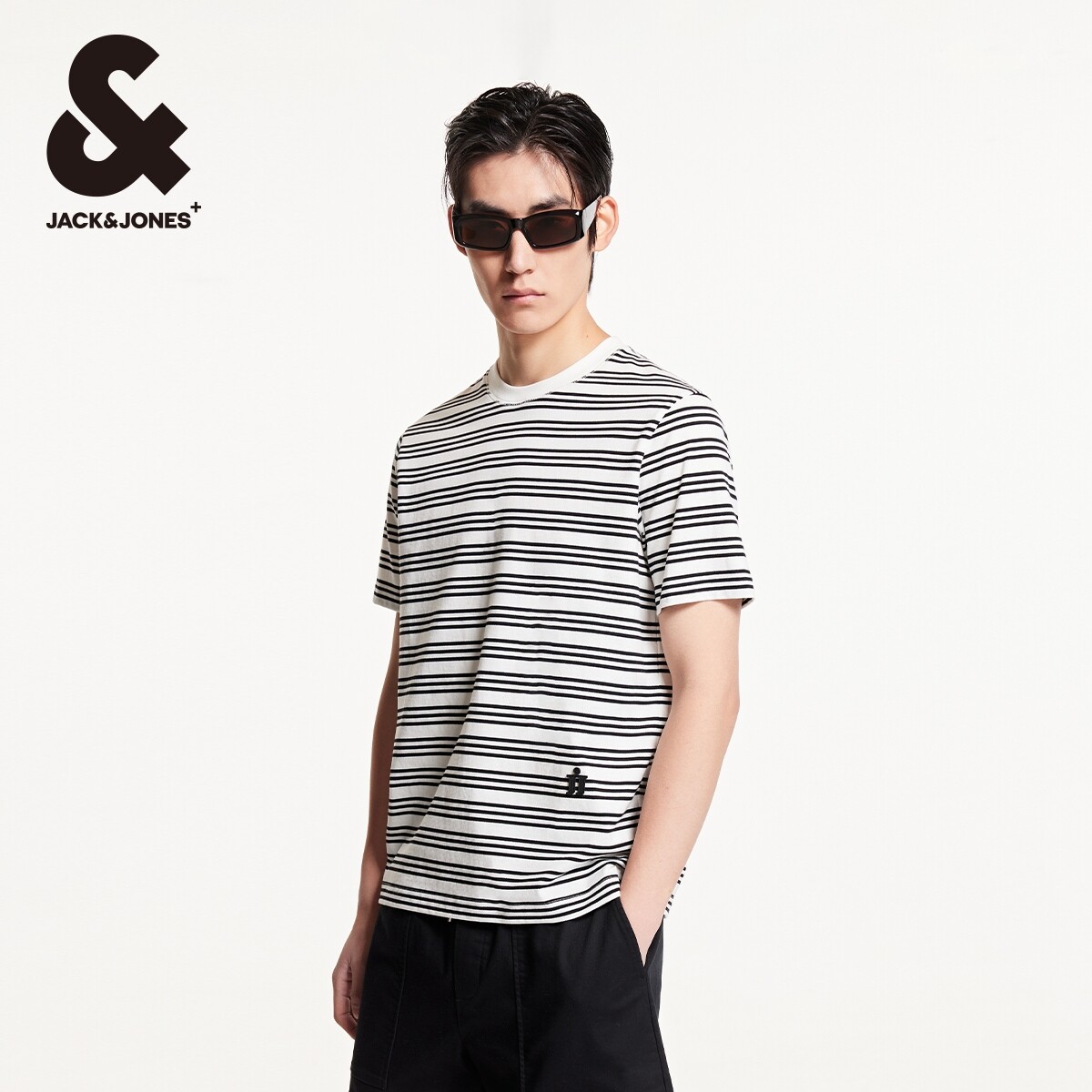 杰克琼斯夏季新款舒适纯棉衣身条纹直筒圆领男士短袖男款T恤男装