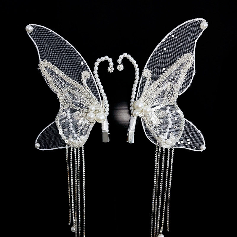 韩版新娘头饰手工人工珍珠流苏蝴蝶发夹韩式婚礼婚纱造型发饰配饰