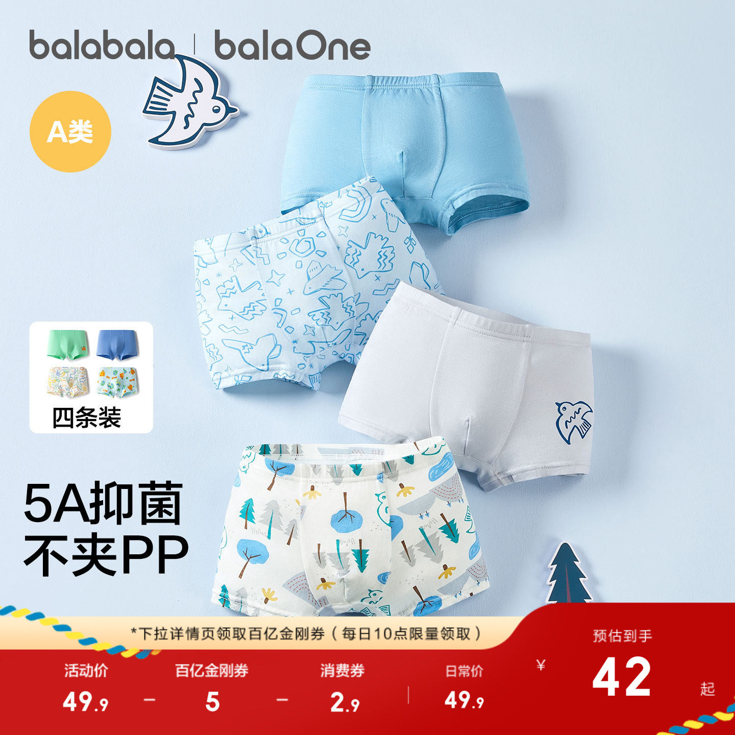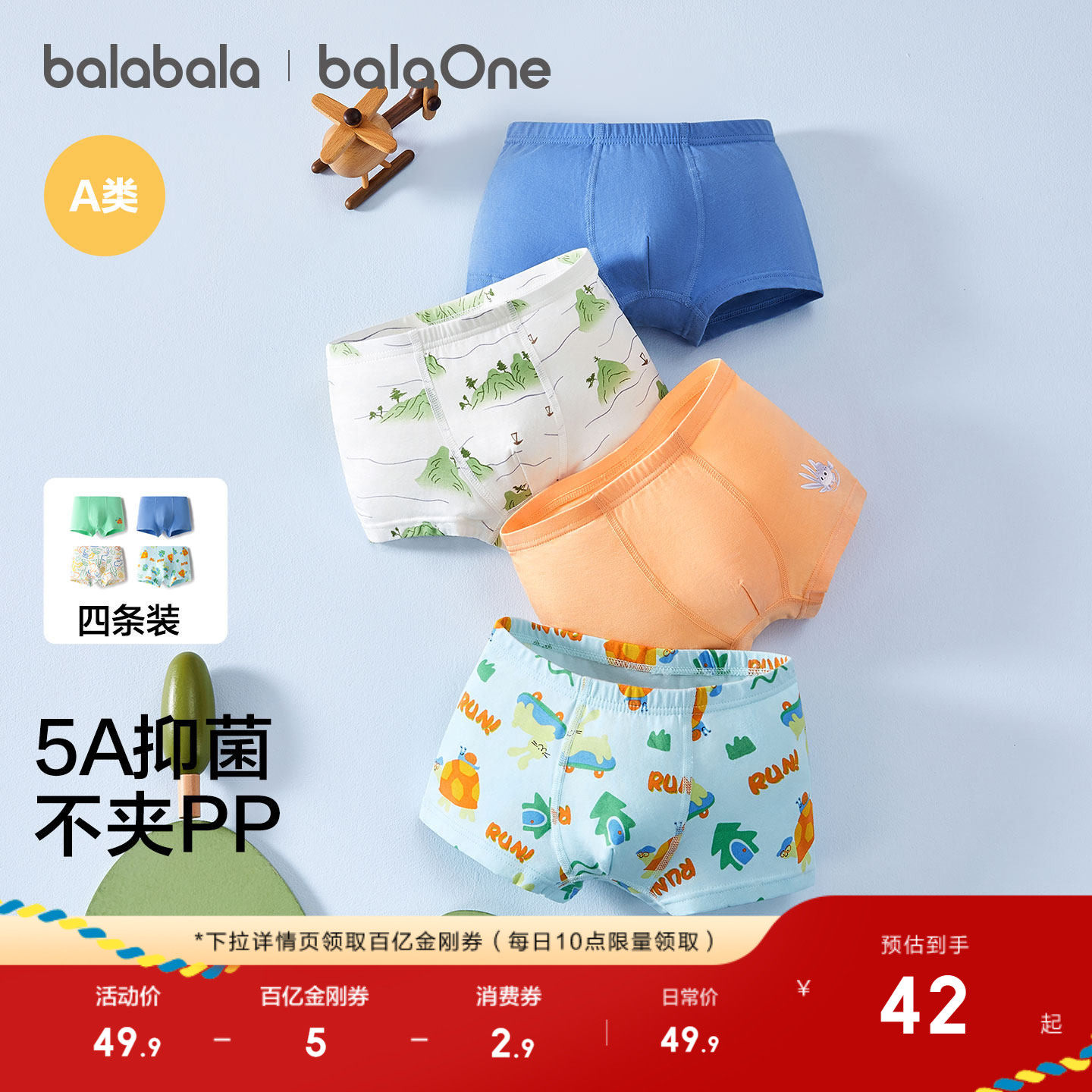 【balaOne】巴拉巴拉儿童内裤棉男童不夹pp抗菌裆四角短裤三条装