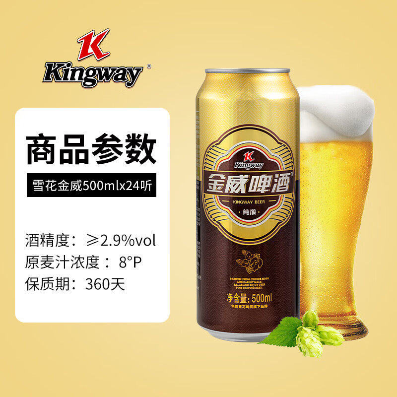 雪花金威啤酒500ml罐装听装拉罐原麦汁浓度8°P酒精度2.9