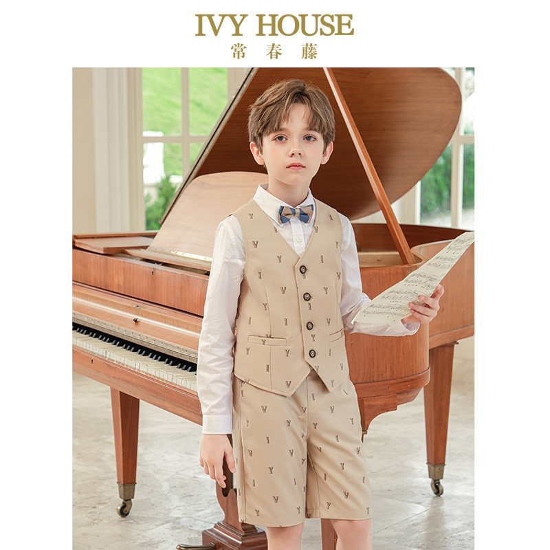 IVY HOUSE常春藤儿童装男童春季新款 顺滑满印西服马甲短西裤套装