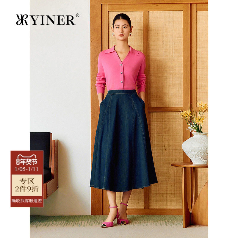 【1996系列】YINER音儿2025春季新款真丝美丽诺羊毛海鸥领针织衫