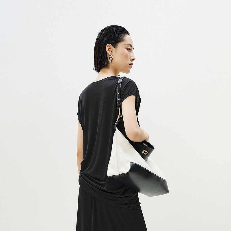 荒荒家 露肩短袖2025夏季新款斜肩设计小心机修身纯欲ins风T恤女