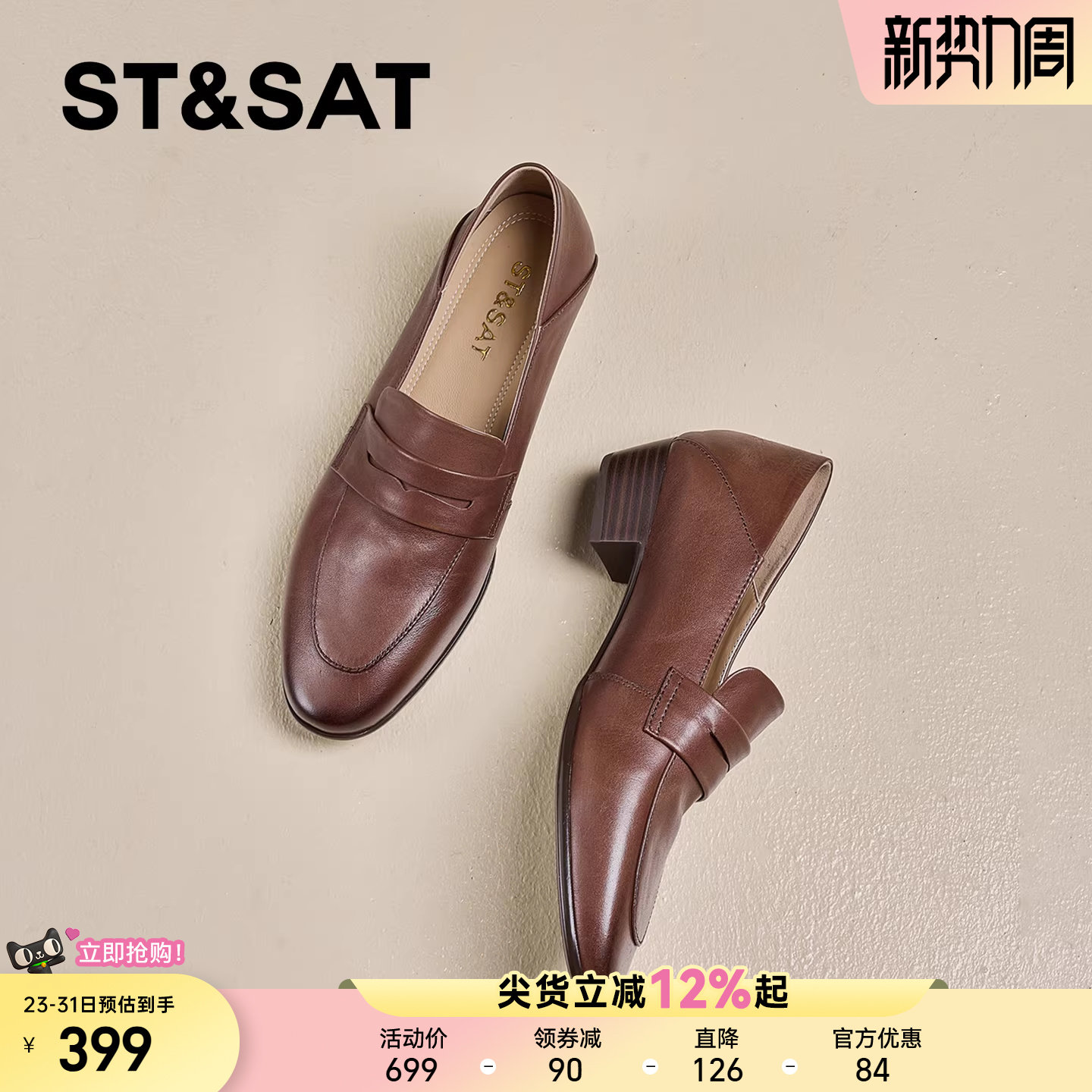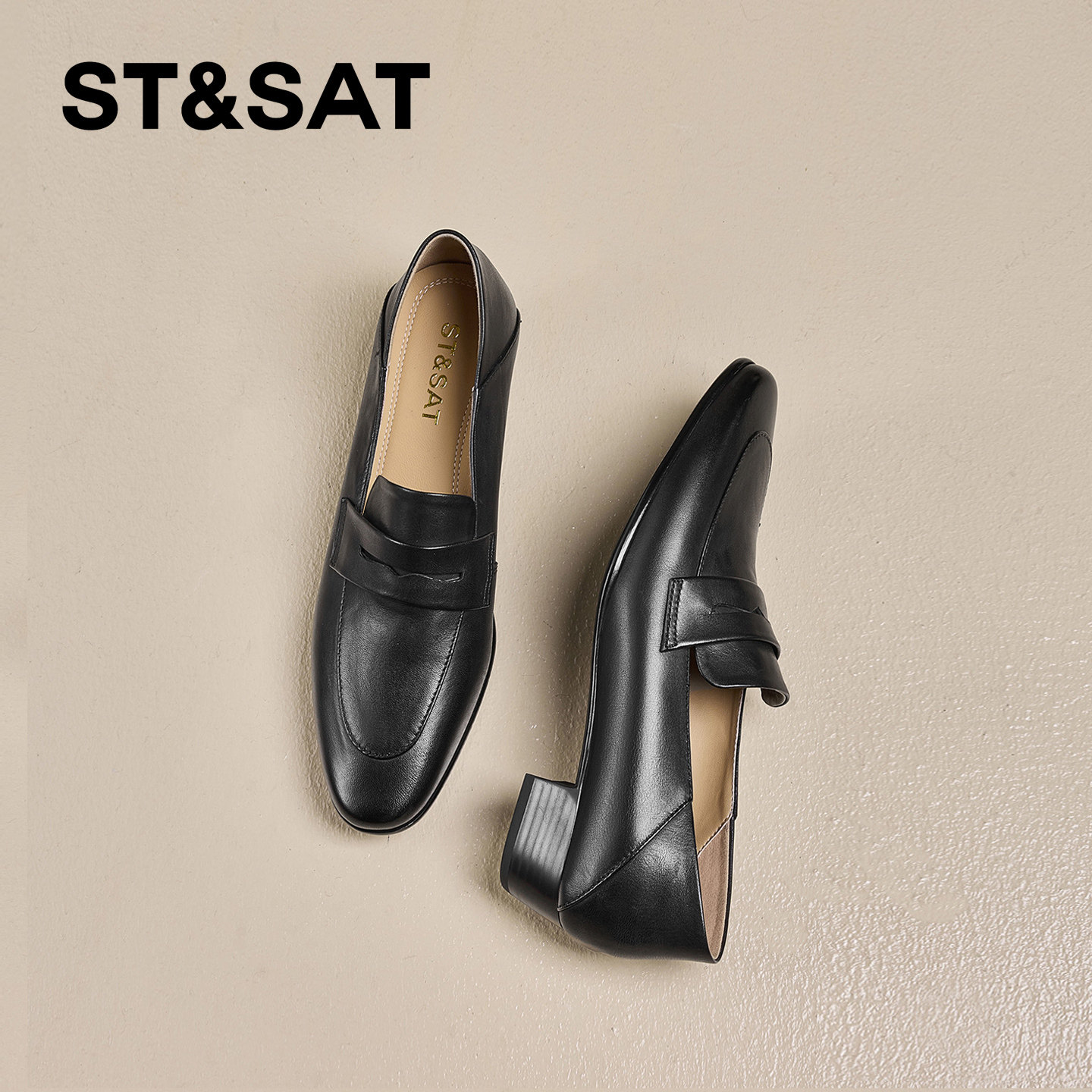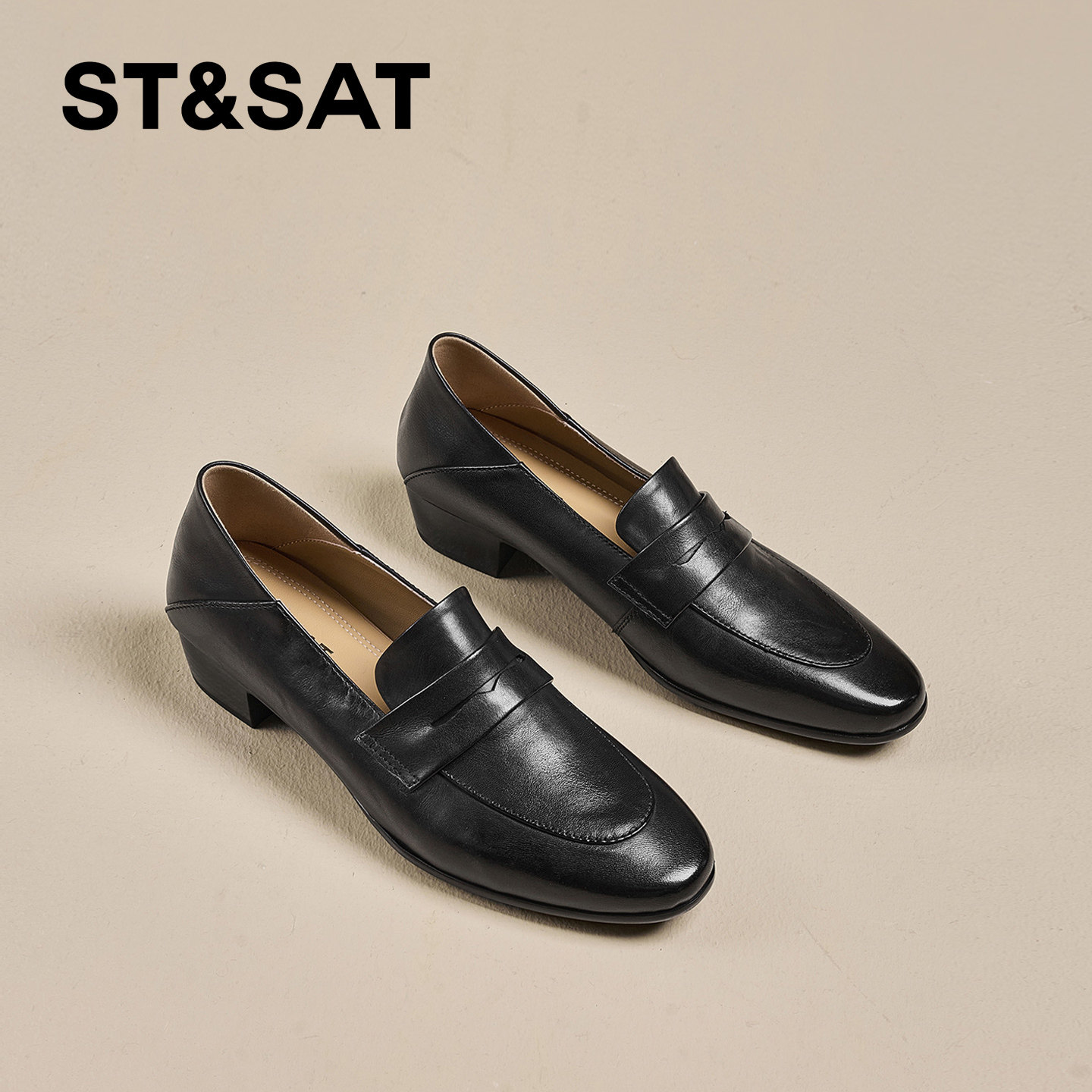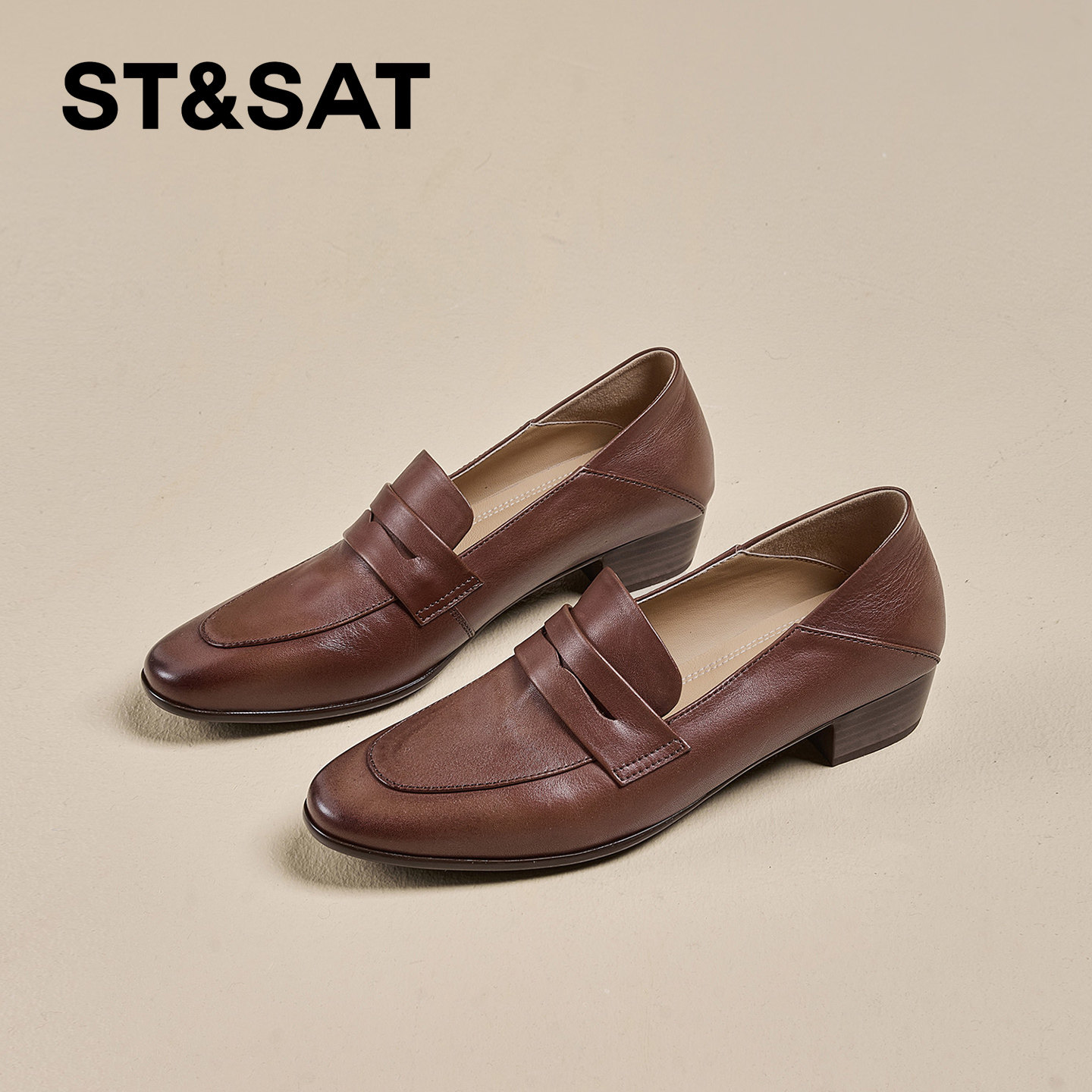 星期六真皮英伦风粗跟乐福鞋女2026春季新款一脚蹬妈妈鞋通勤单鞋