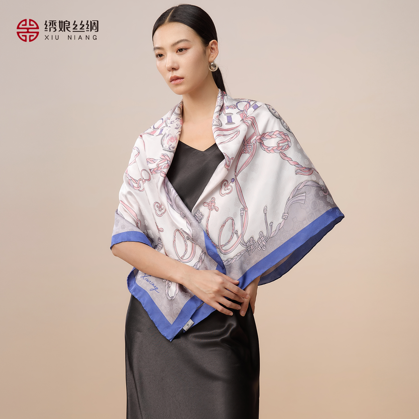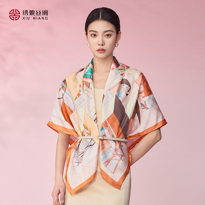 绣娘丝绸100%桑蚕丝真丝方巾双面同色印花丝巾高级送女生礼物礼盒