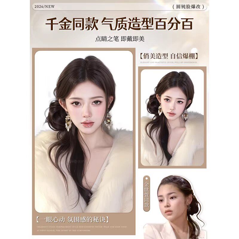 超长龙须丸子头假发抓夹古早感韩剧千金风慵懒蓬松花苞头假发发包