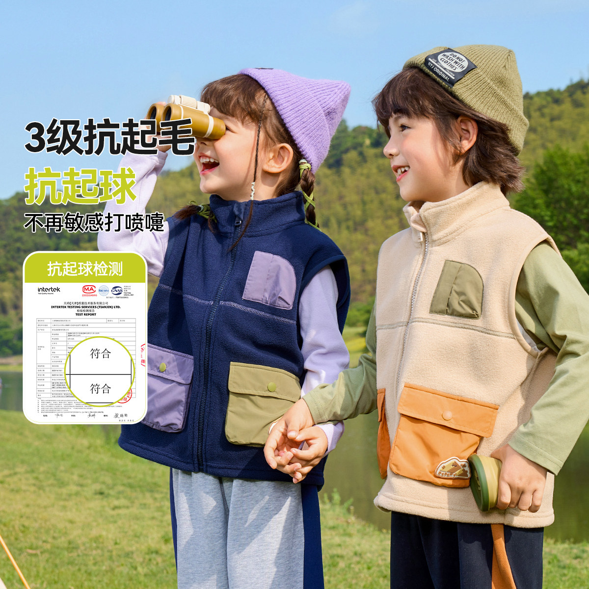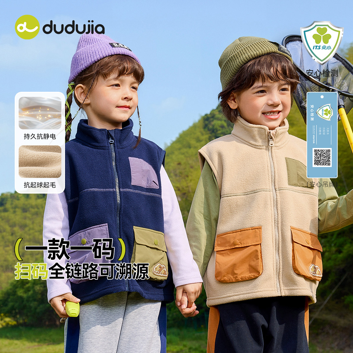 【安心绒抗静电】嘟嘟家宝宝马甲春季户外儿童双面绒坎肩男童春装