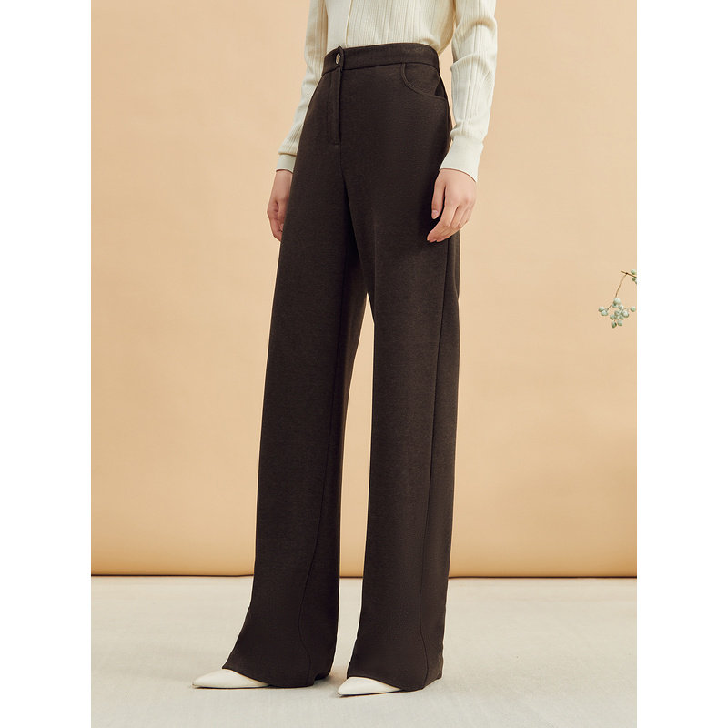 YINER音儿专选女装冬季通勤美拉德垂感厚实保暖高腰直筒休闲长裤