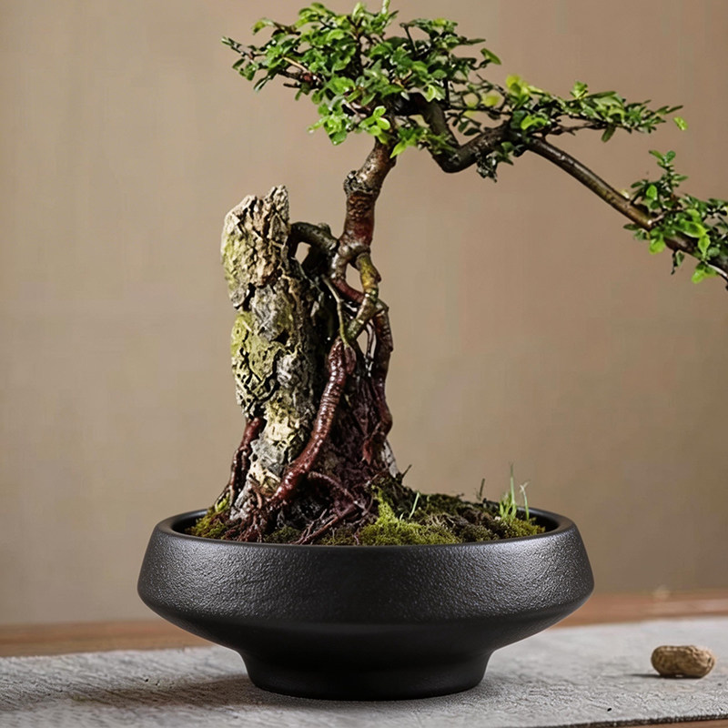苔藓球托盘花盆陶瓷盆中式亚光简约桌面摆件水培米竹干果盆托国风