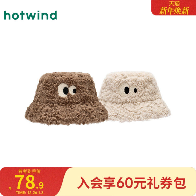 热风2025年冬季新款女士温暖舒适长绒面料小眼睛刺绣可爱毛毛盆帽