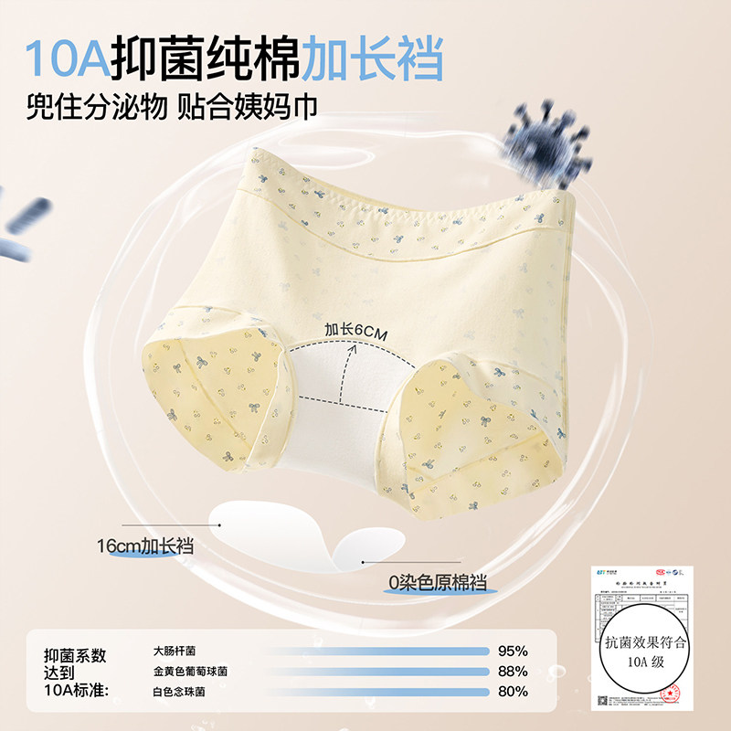 草本初色妇炎洁牌内裤女2025新中高腰加长纯棉底裆无痕抗菌三角裤