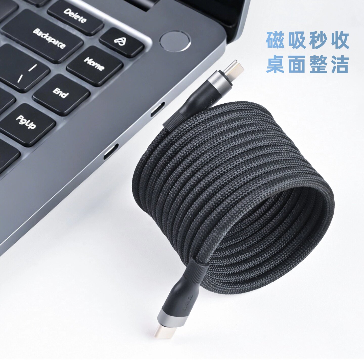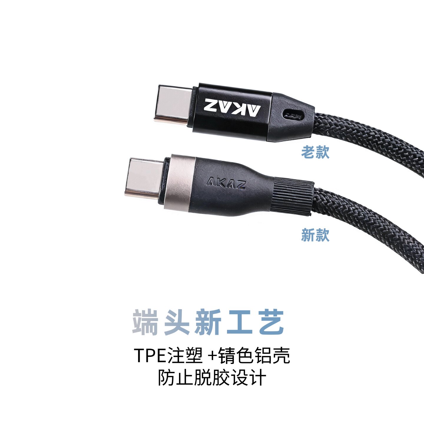 AKAZ磁吸双C数据线PD快充240W吸附收纳编织两端typec口标准USB-C线usb2.0传输