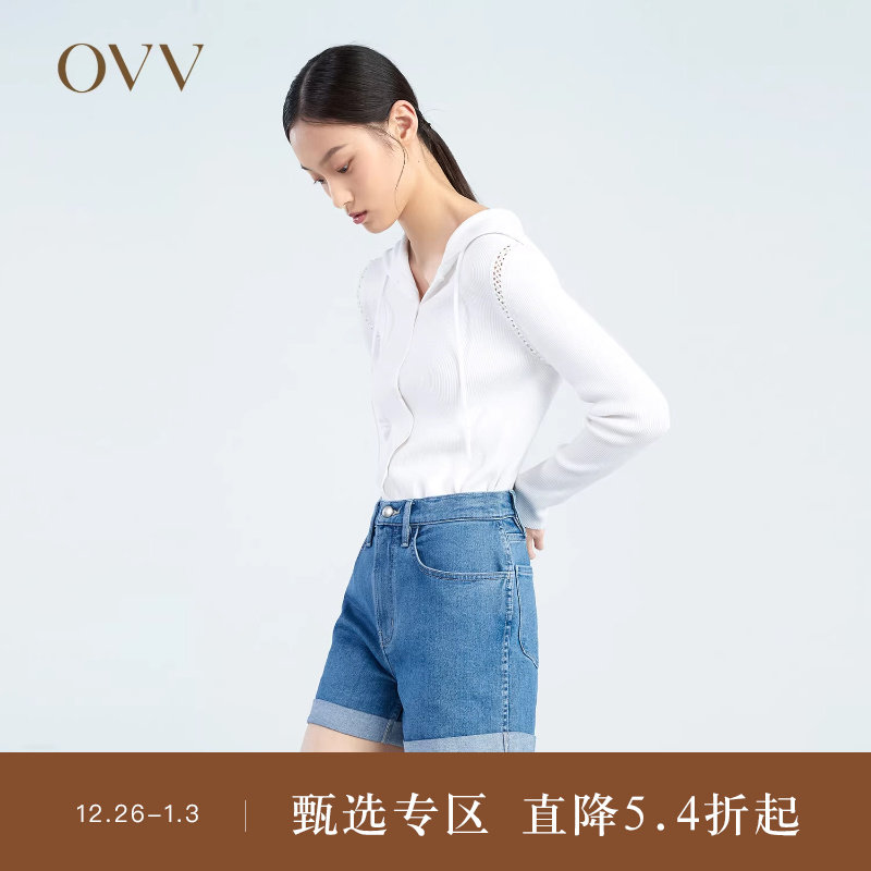 OVV春夏热卖女装棉质醋酸清爽休闲抽绳连帽长袖针织开衫外套