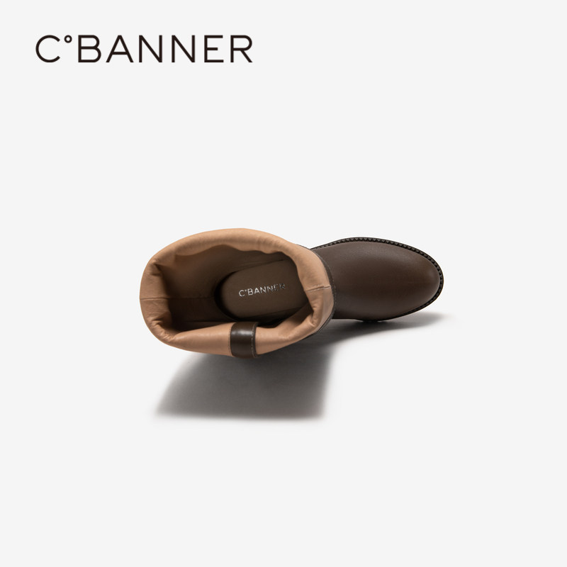 天美意复古厚底加绒西部靴骑士靴女鞋子冬新款休闲时装靴短靴皮靴