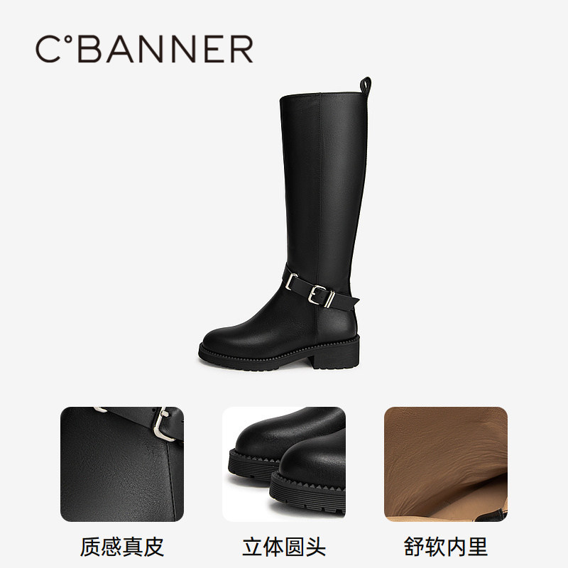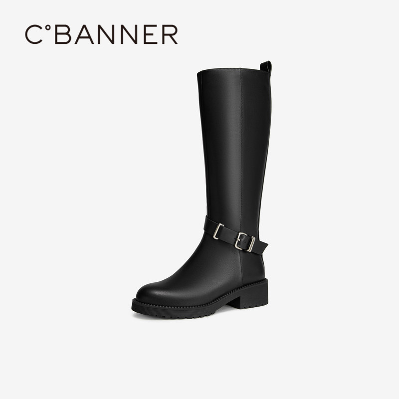 H55女鞋继承者2025冬季新款大腿围显瘦长靴皮带扣马靴百搭骑士靴