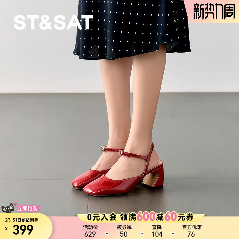 星期六2025新款一字扣带法式外穿单鞋粗跟复古漆皮凉鞋SSD2114366
