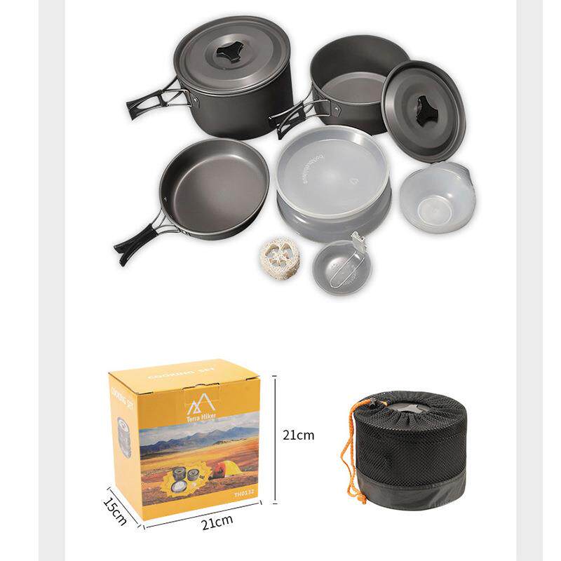 4-5人套锅户外露营野炊用品装备锅具组合套装不粘煎盘便携 TH0132
