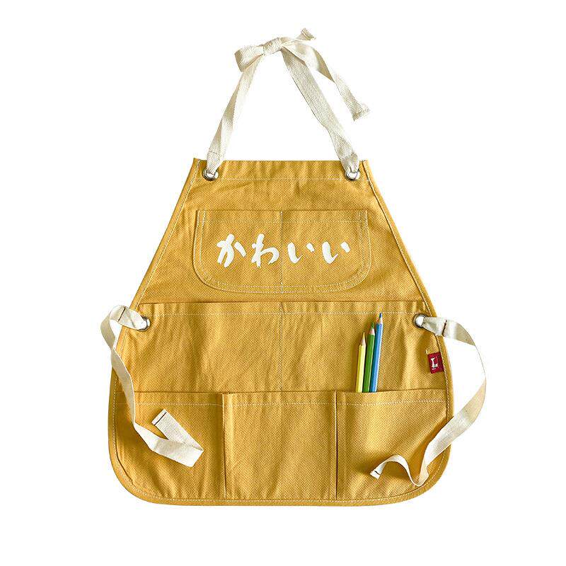 儿童围裙定制印字书法纯棉日式罩衣防污幼儿园班服可调节背带画画