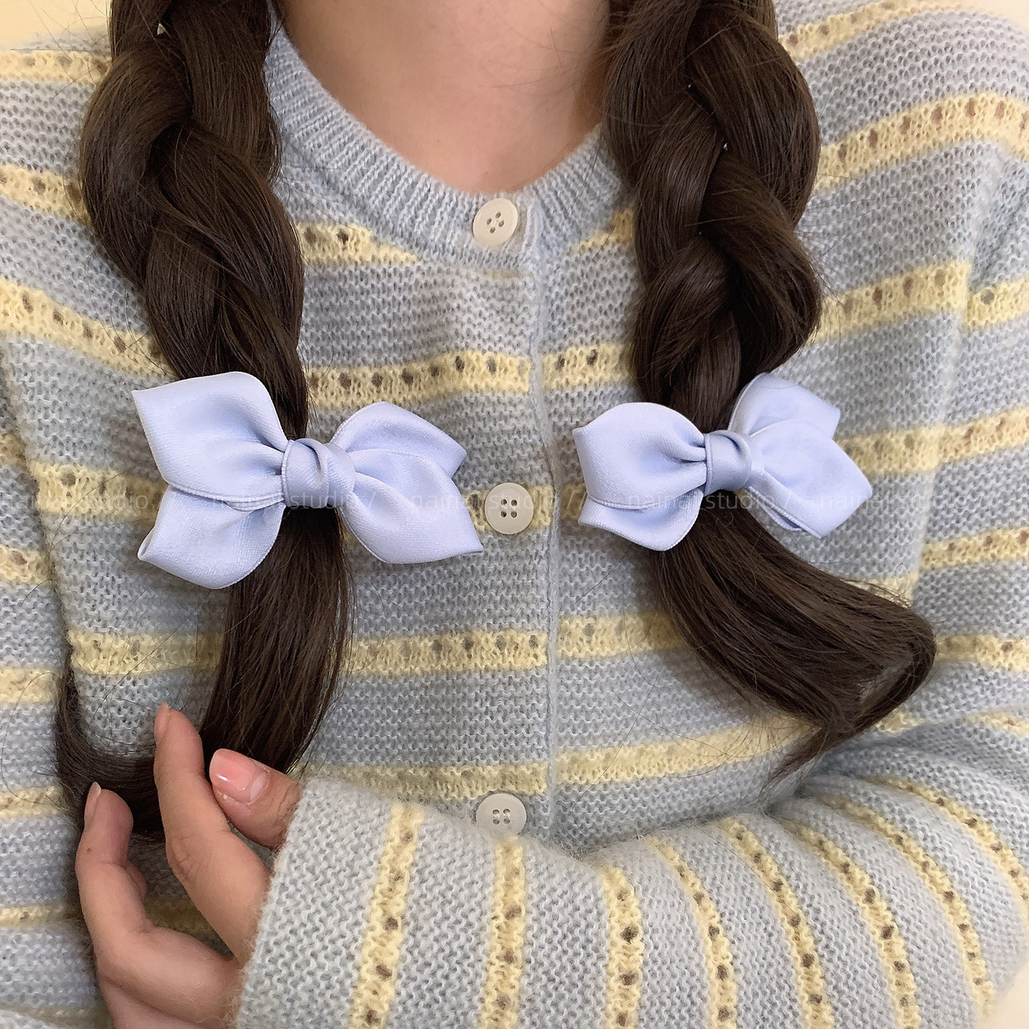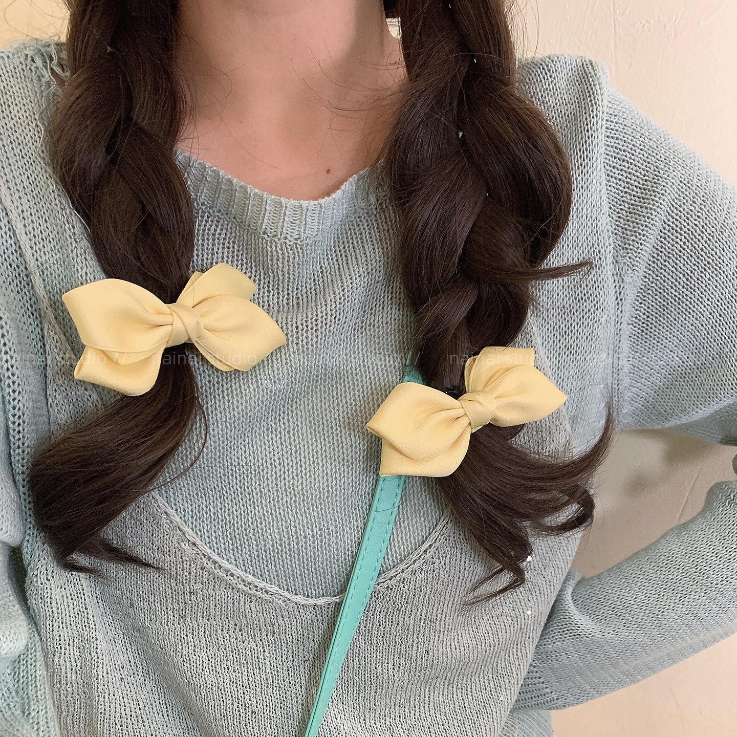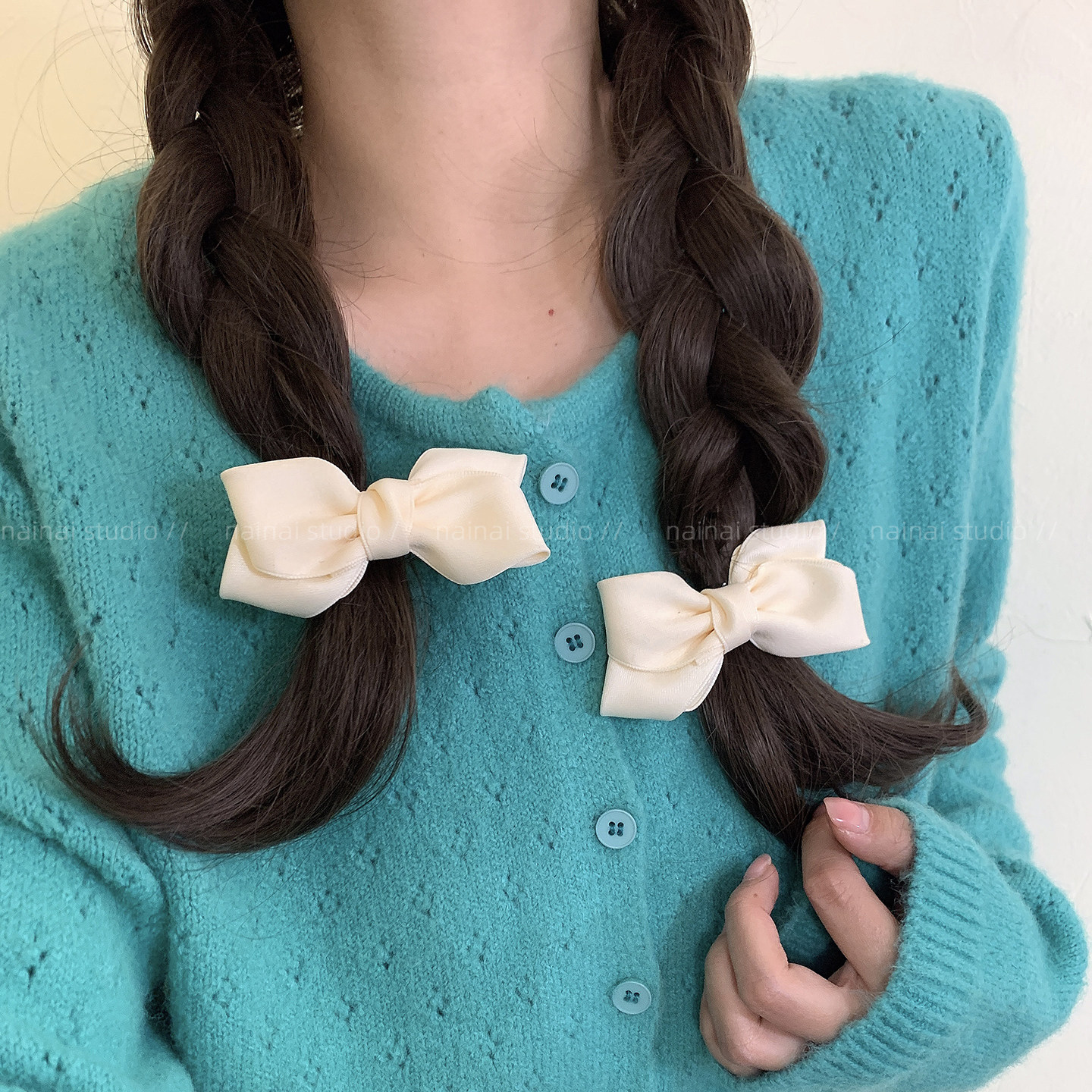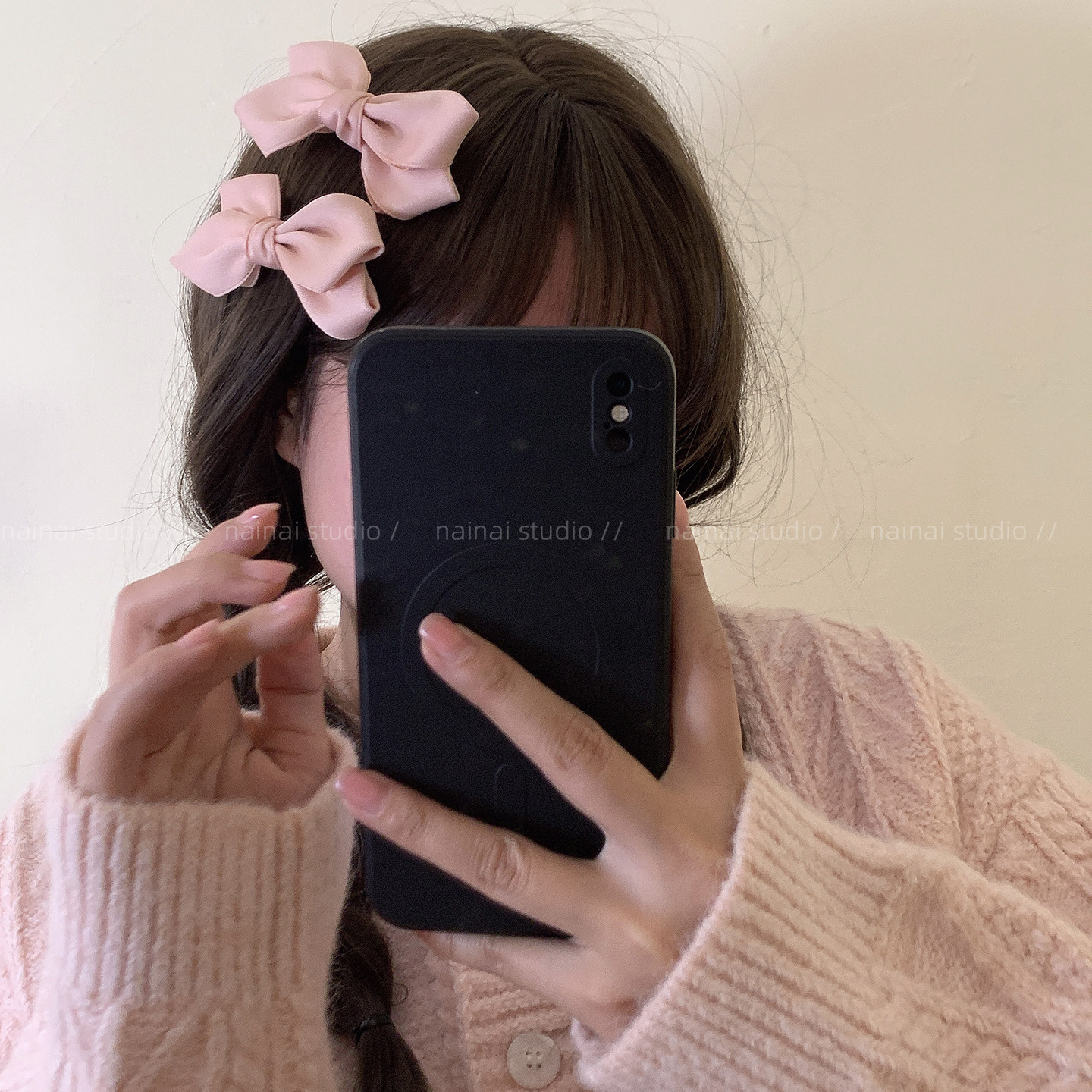 奶油色蝴蝶结发夹~2只装!2026春季新款甜美粉色侧边夹刘海夹发饰