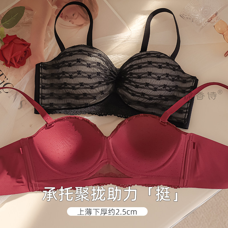 润微提拉内衣女大胸显小无痕防下垂收副乳胸罩爆款隐形粉底液文胸