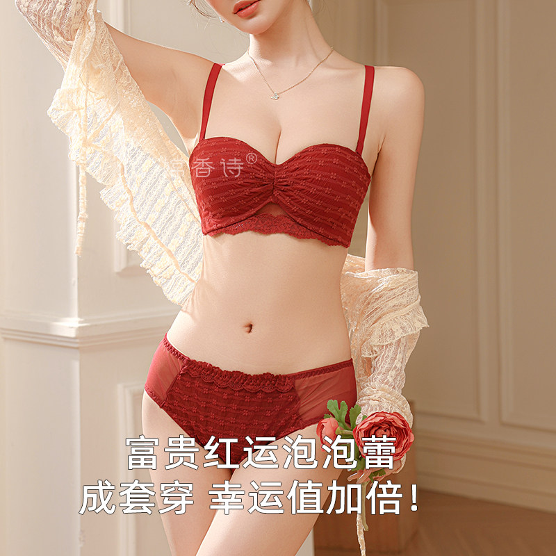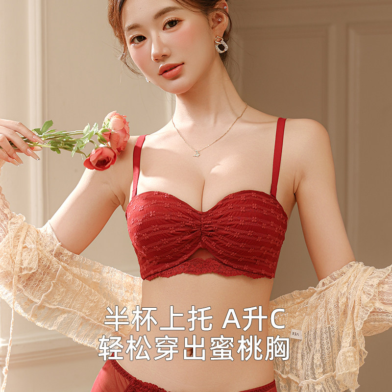 红色本命年内衣内裤套装女小胸聚拢显大结婚新娘2026马年半杯文胸