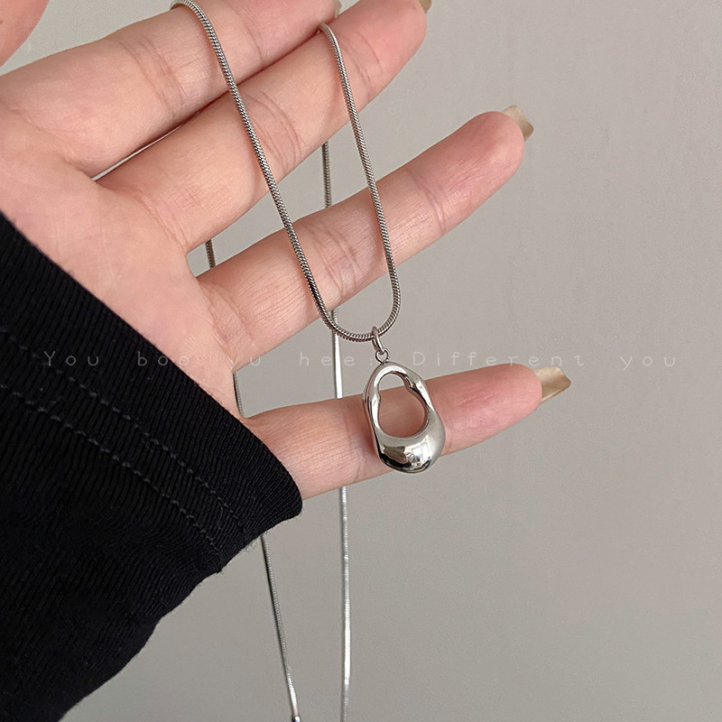 镂空水滴吊坠项链女钛钢不掉色冷淡风气质毛衣链极简个性小众配饰
