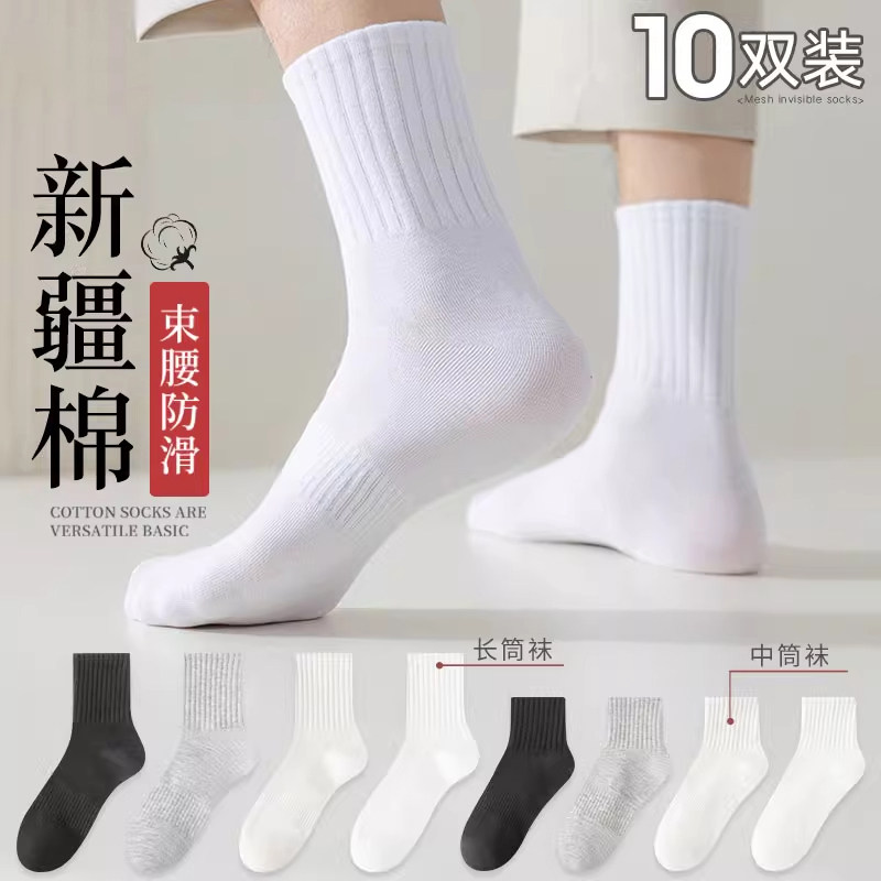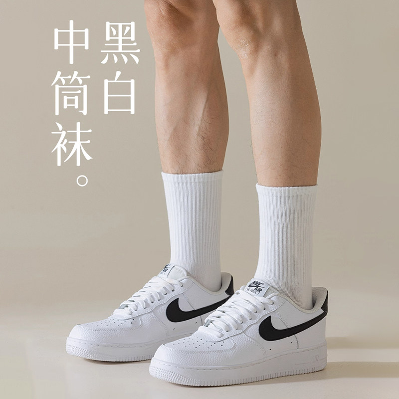 袜子男款短袜夏薄款纯棉防臭运动袜夏天吸汗透气中筒袜黑白色长袜
