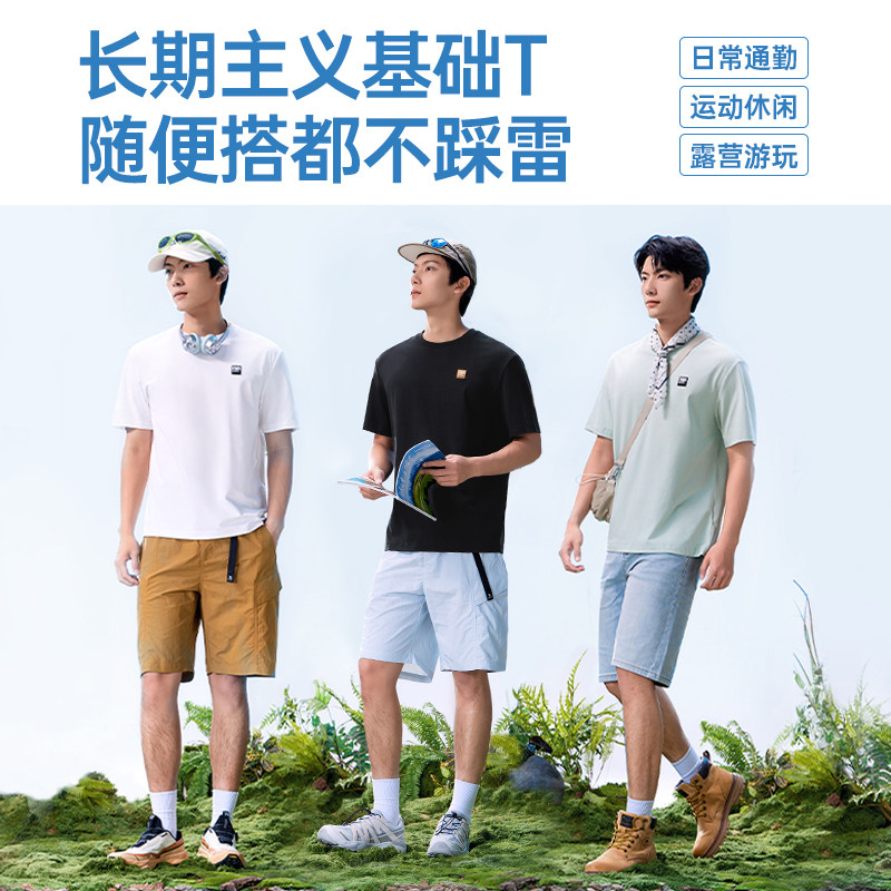 森马短袖T恤男纯棉打底衫修身长袖25夏季新款纯色内搭上衣简约白