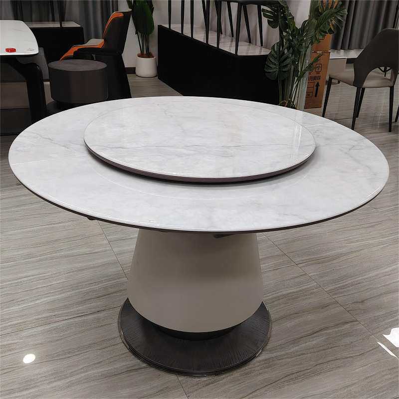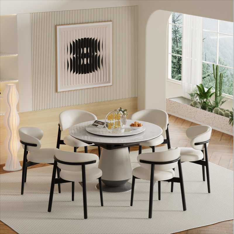 餐桌圆桌可伸缩圆形变形微晶石岩板吃饭桌子椅子组合岩板餐桌