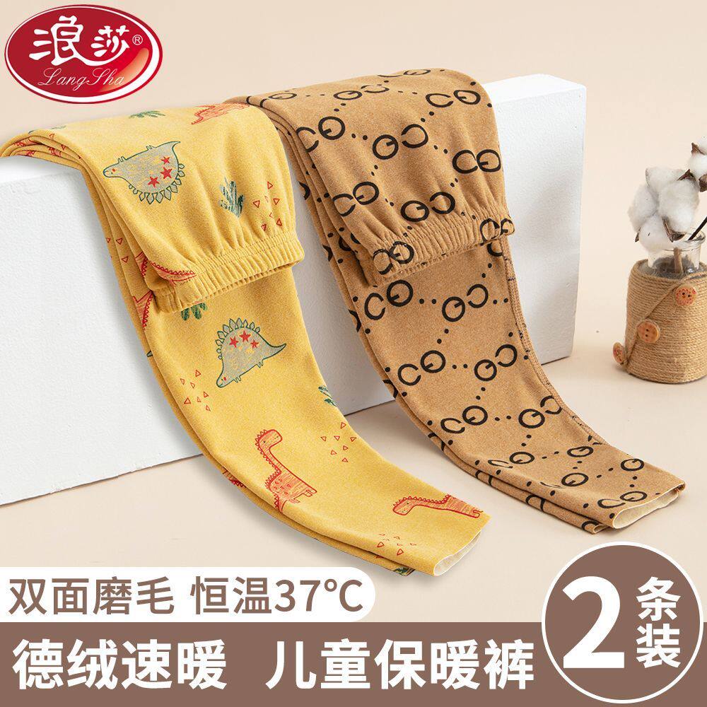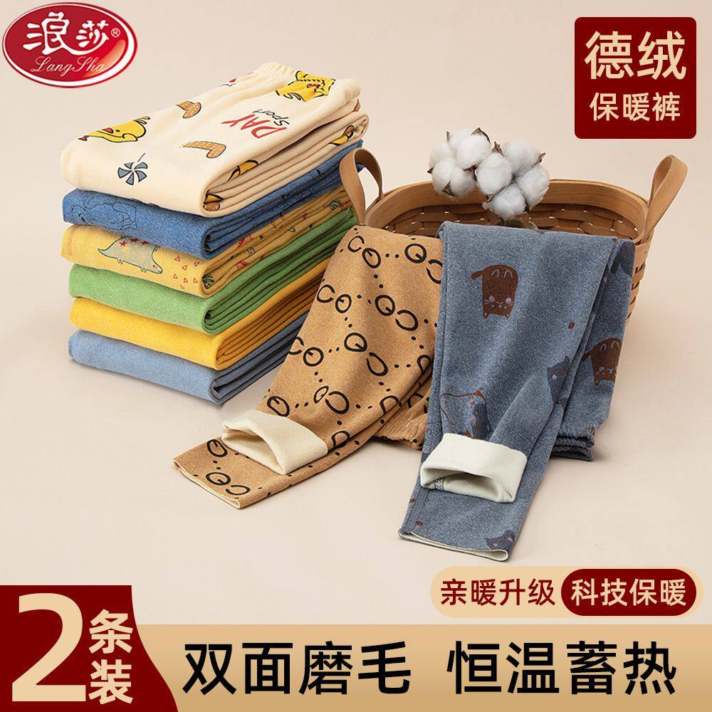 浪莎儿童德绒无痕秋裤男童加绒加厚保暖打底裤秋冬发热睡裤中大童