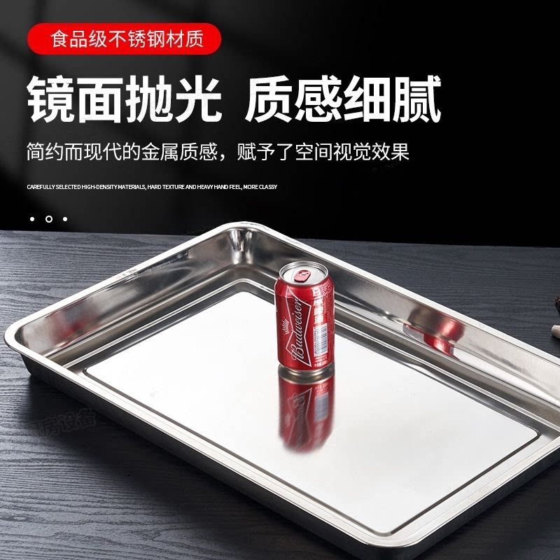 食品级304不锈钢托盘长方形盘子家用方盘商用烤鱼盘铁盘子烤盘400