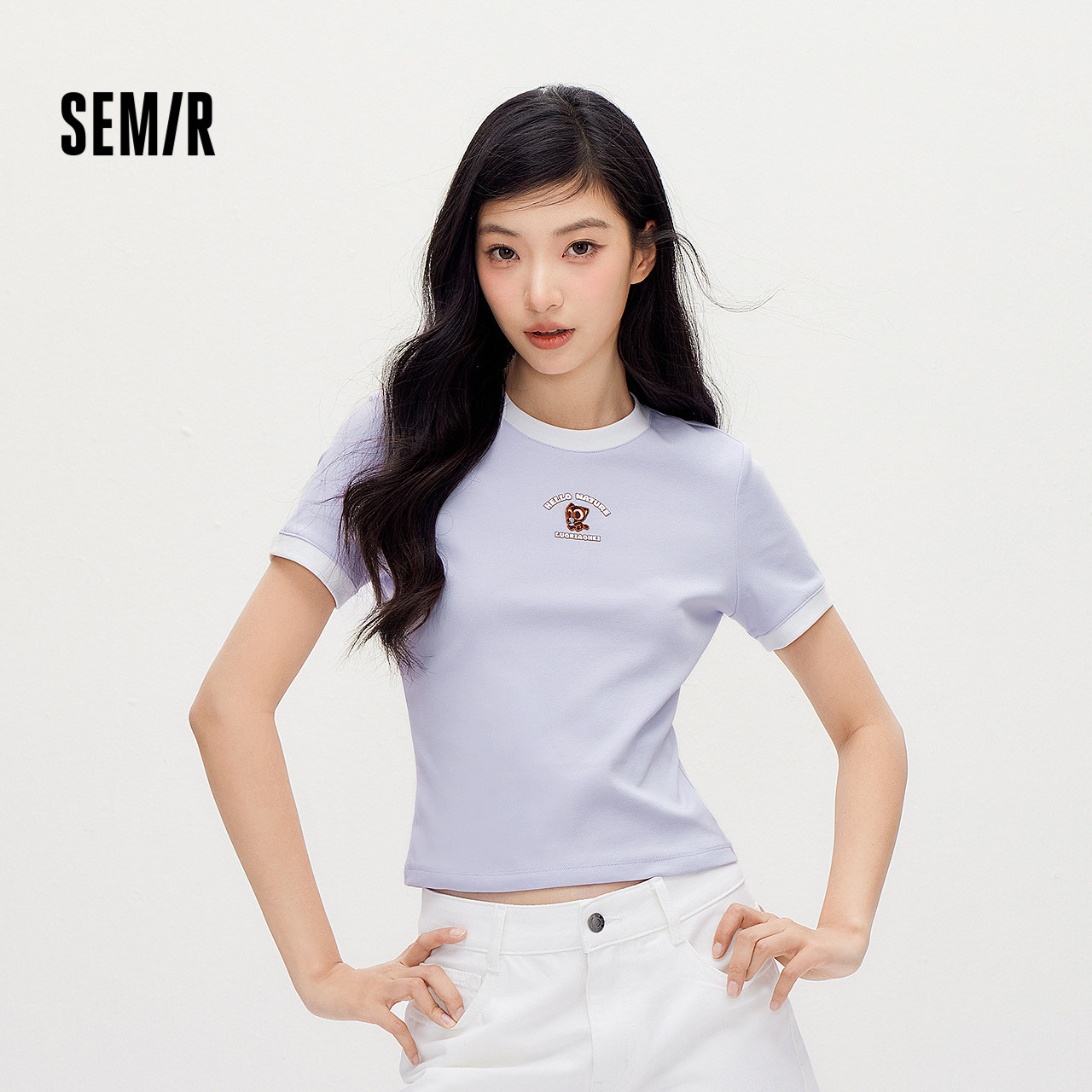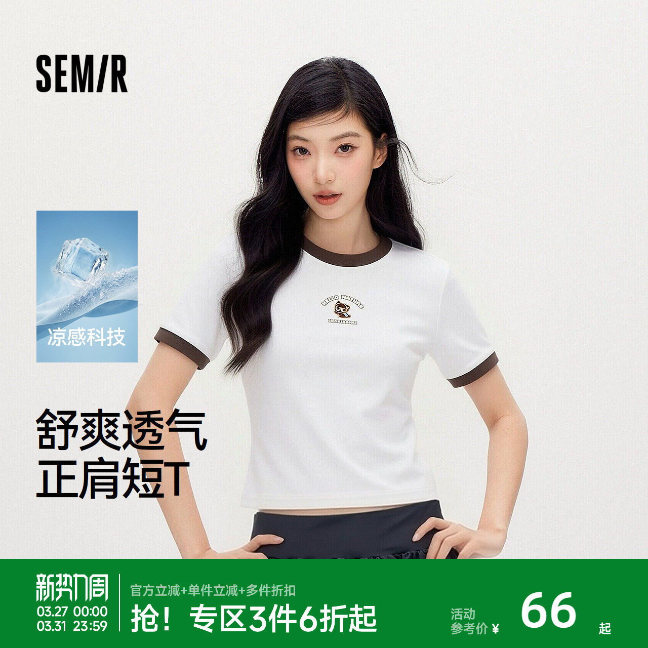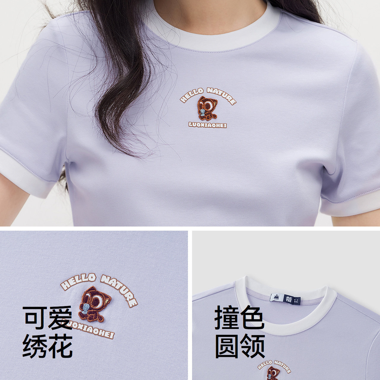 凉感T|森马罗小黑短袖T恤女夏短款撞色修身正肩2026新款休闲上衣