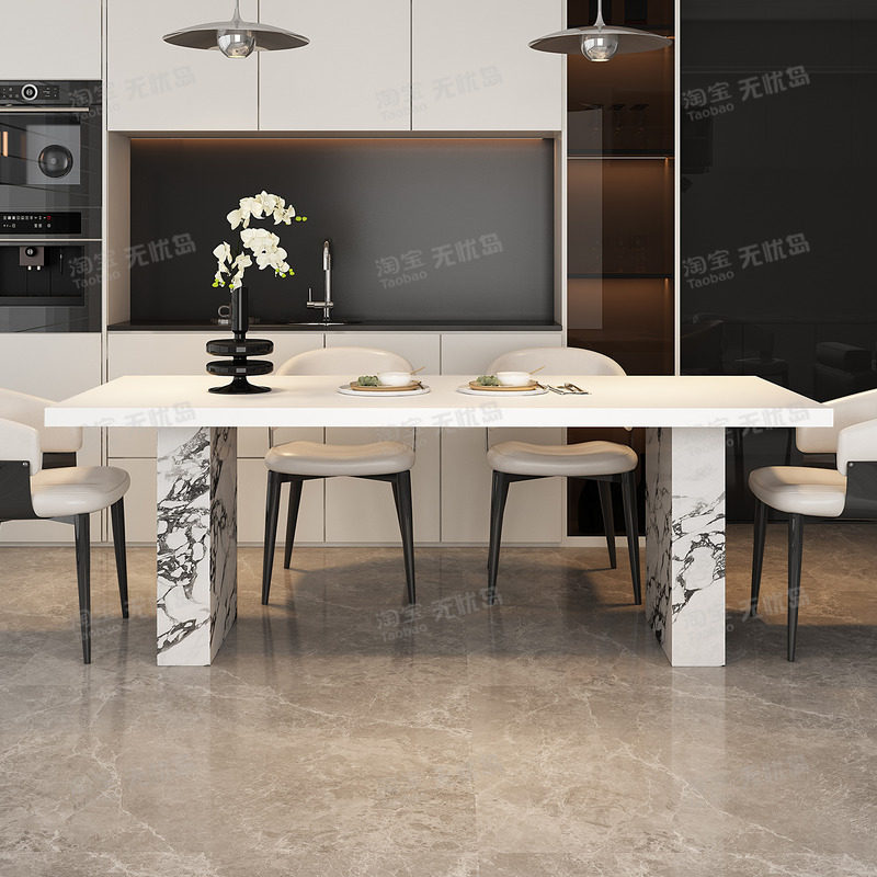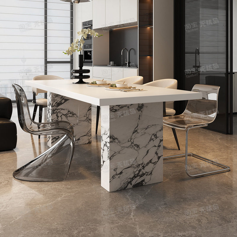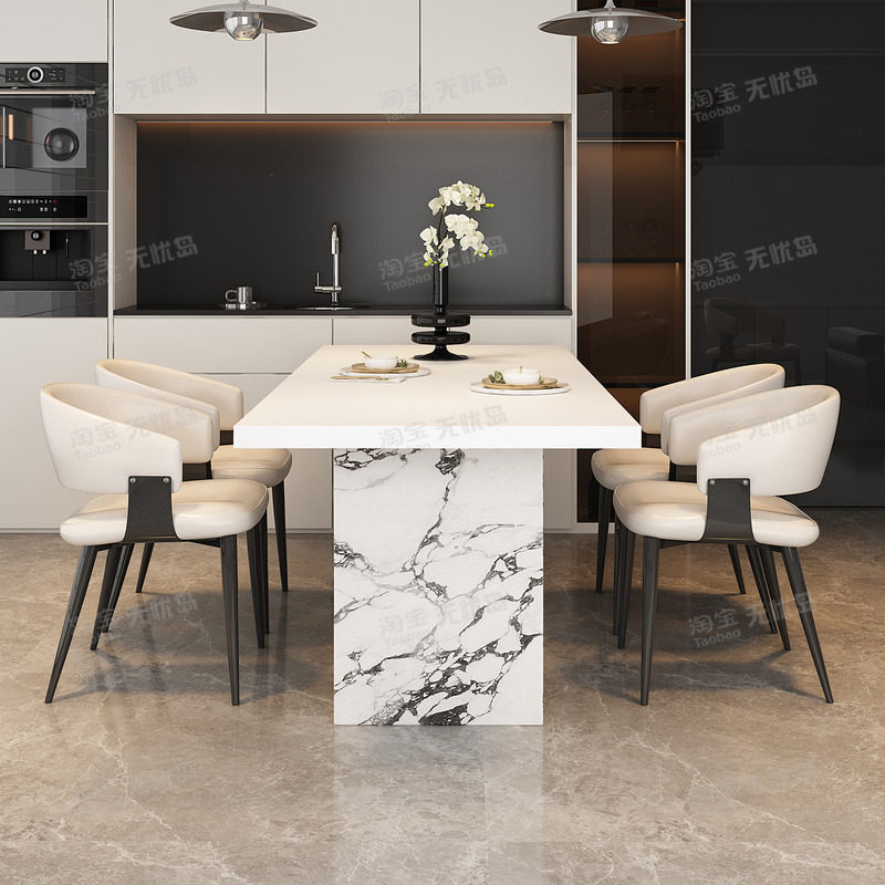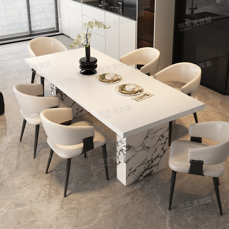 意式极简奶油风纯白色岩板餐桌长方形家用简约现代小户型吃饭桌子