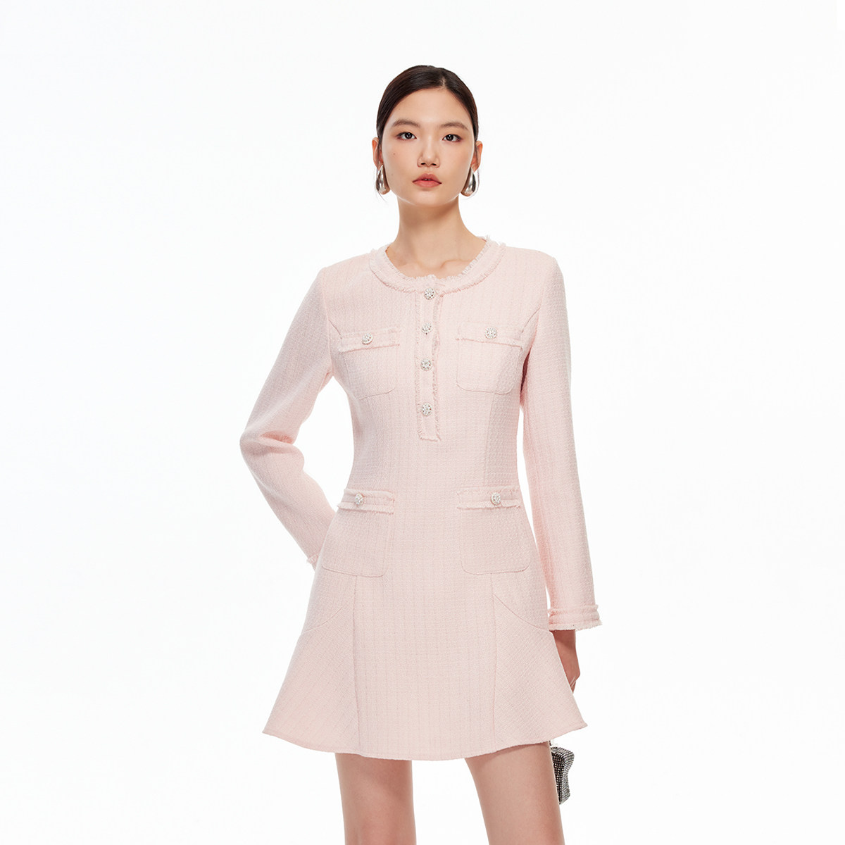 Vero Moda连衣裙2026春季新款含绵羊毛双口袋小香风A字流苏短裙