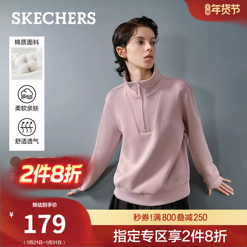 斯凯奇新年战袍红色立领卫衣女春季上衣半拉链长袖外套加厚运动衫