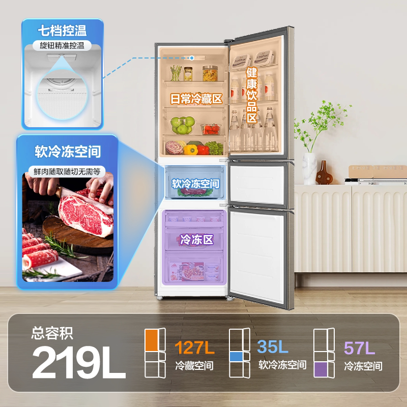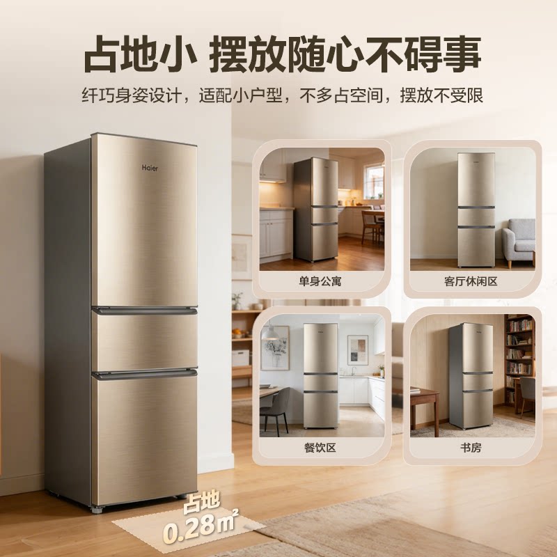 换新补贴海尔冰箱219L单开三开门二人小型出租房节能家用官方正品