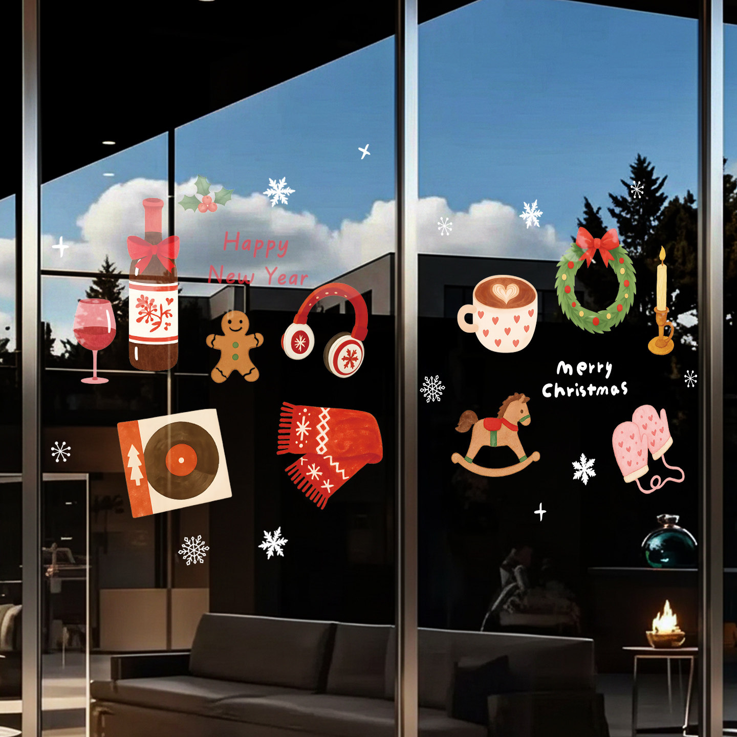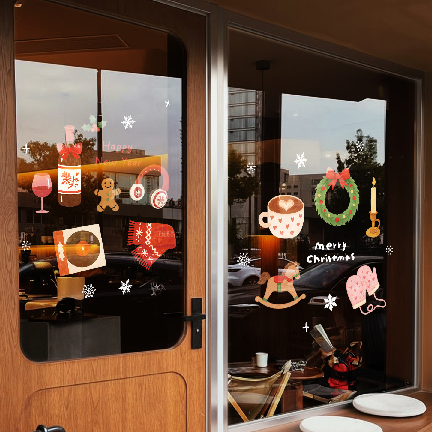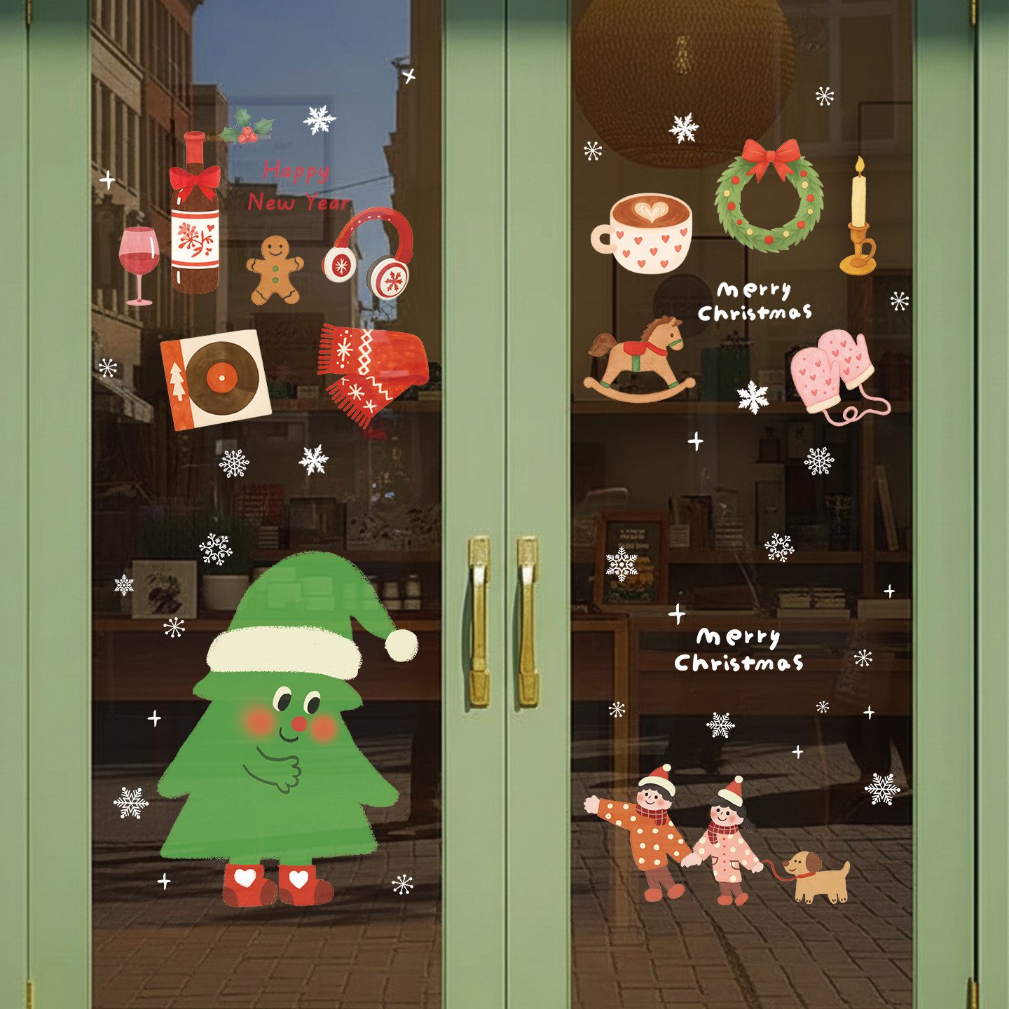 圣诞节装饰品圣诞老人树窗花玻璃门贴纸耶诞场景氛围布置窗贴静电