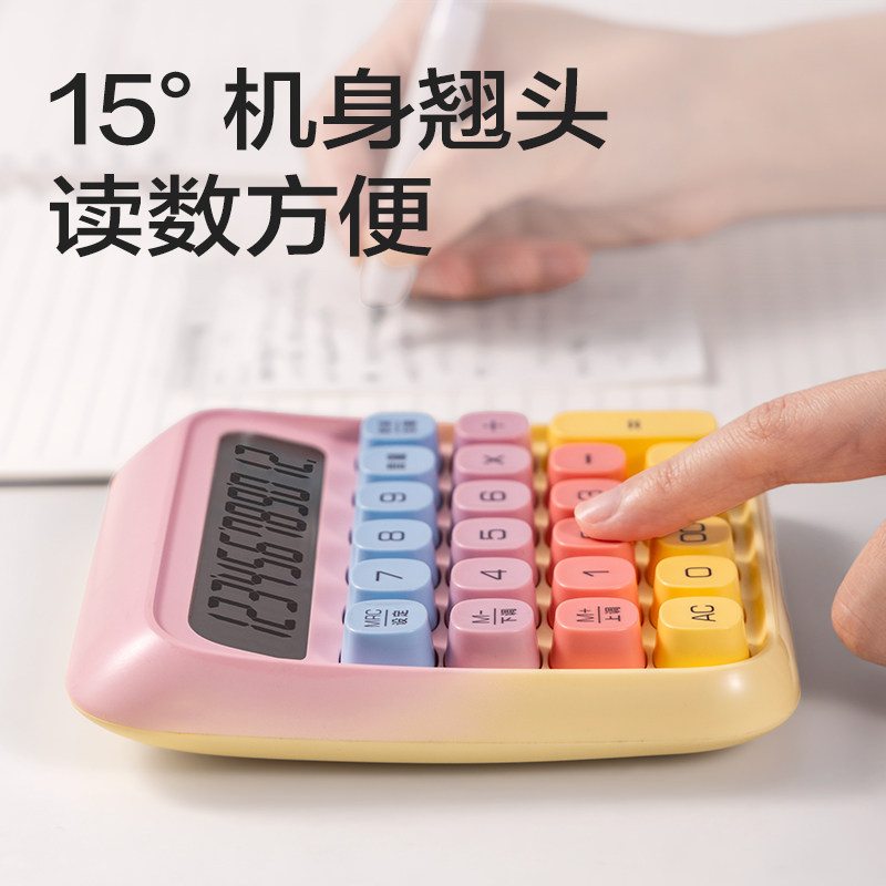 得力计算器语音款多巴胺高颜值撞色办公学生用便携真人发音计算机器少女心创意桌面财务会计多功能柔性键盘女